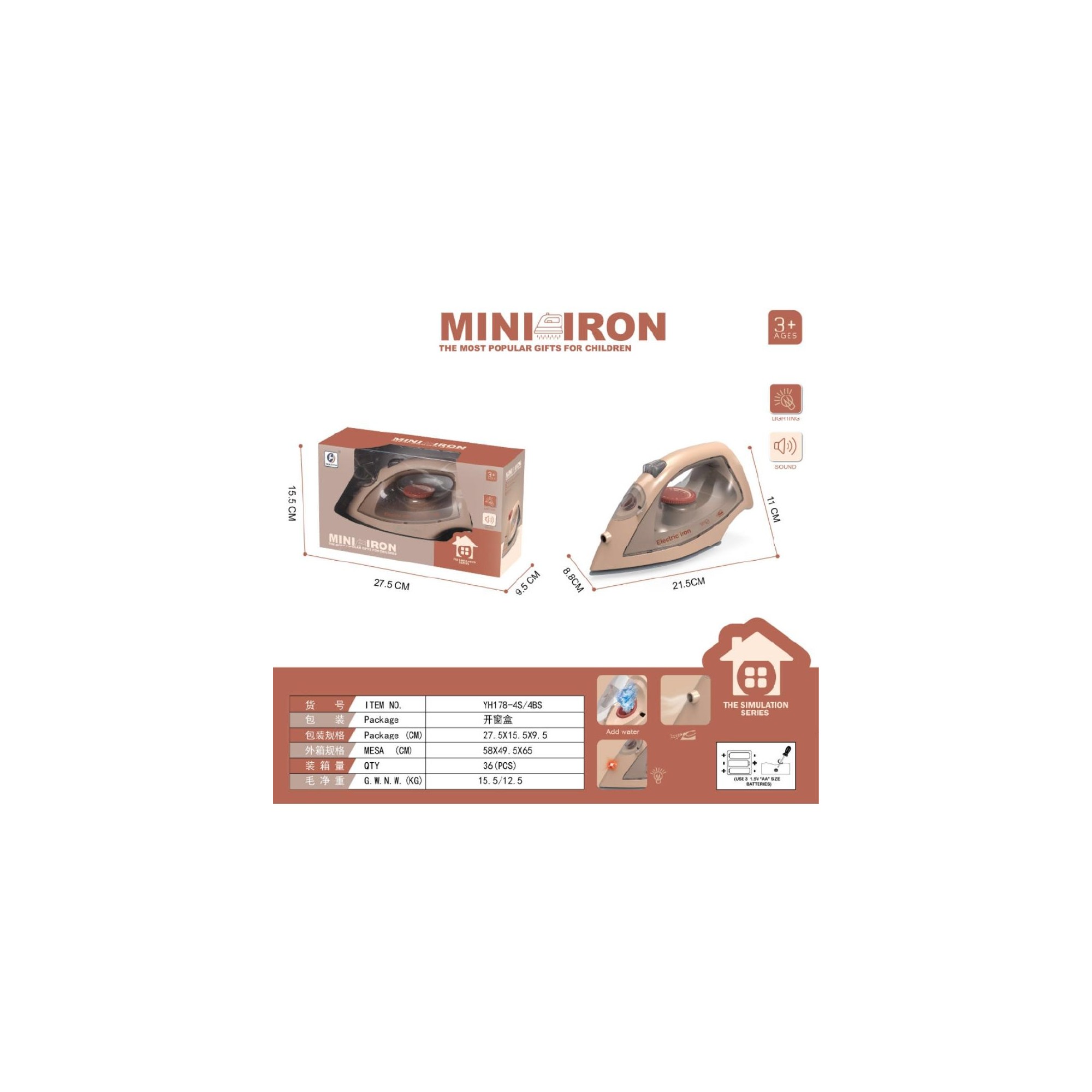 Make pretend chores exciting with the My Little Home Mini Iron (With Smoke) - Light and Sound (Beige) – the perfect role-play toy for little homemakers!
