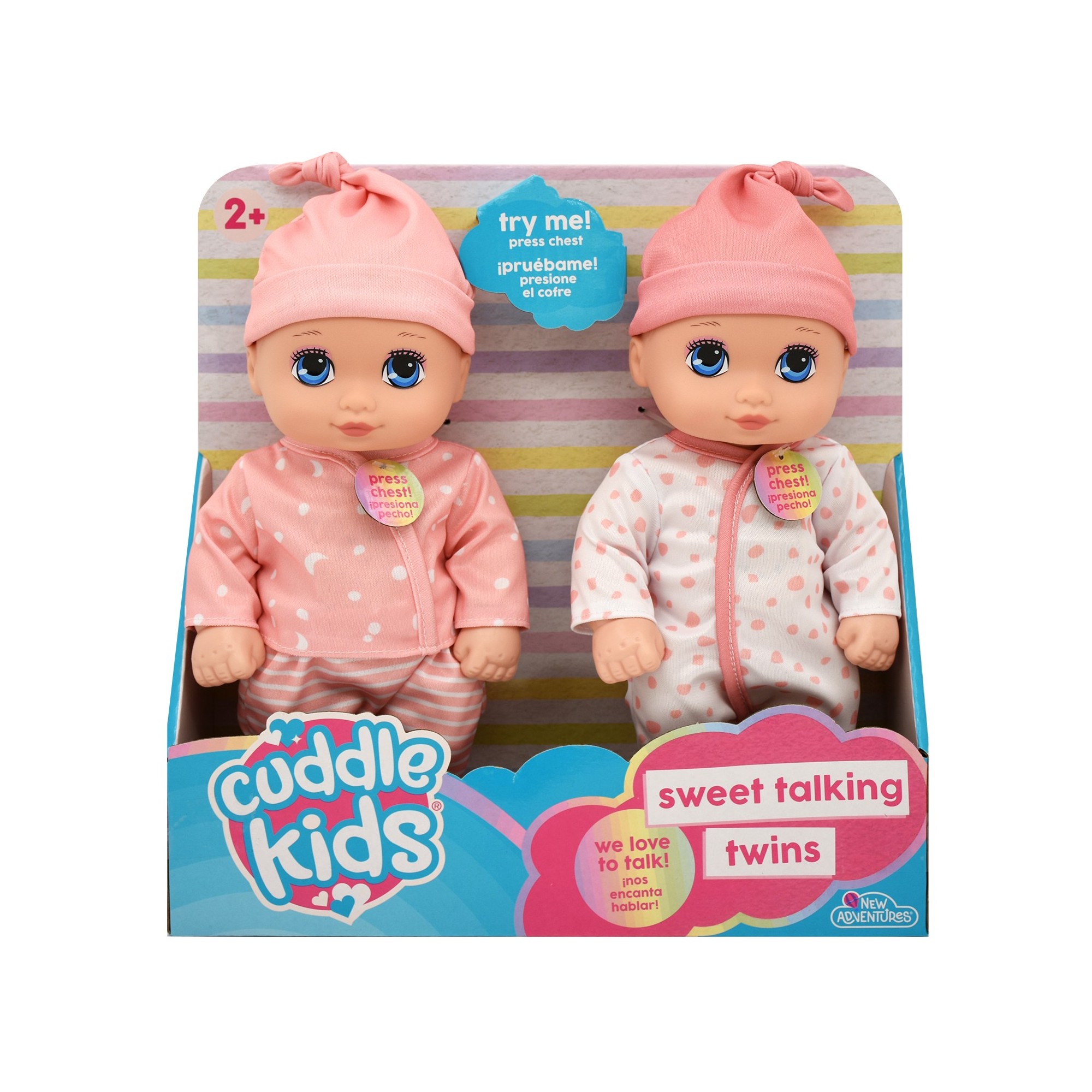 The Cuddle Kids Sweet Talking Twins are adorable 10-inch baby dolls designed to encourage nurturing play, imagination, and early interaction. With soft outfits, expressive eyes, and interactive talking features, these sweet twins respond when their chest is pressed, delighting little ones with fun phrases and sounds. Perfectly sized for small hands, they make a comforting companion for toddlers and a lovely gift for early learners.