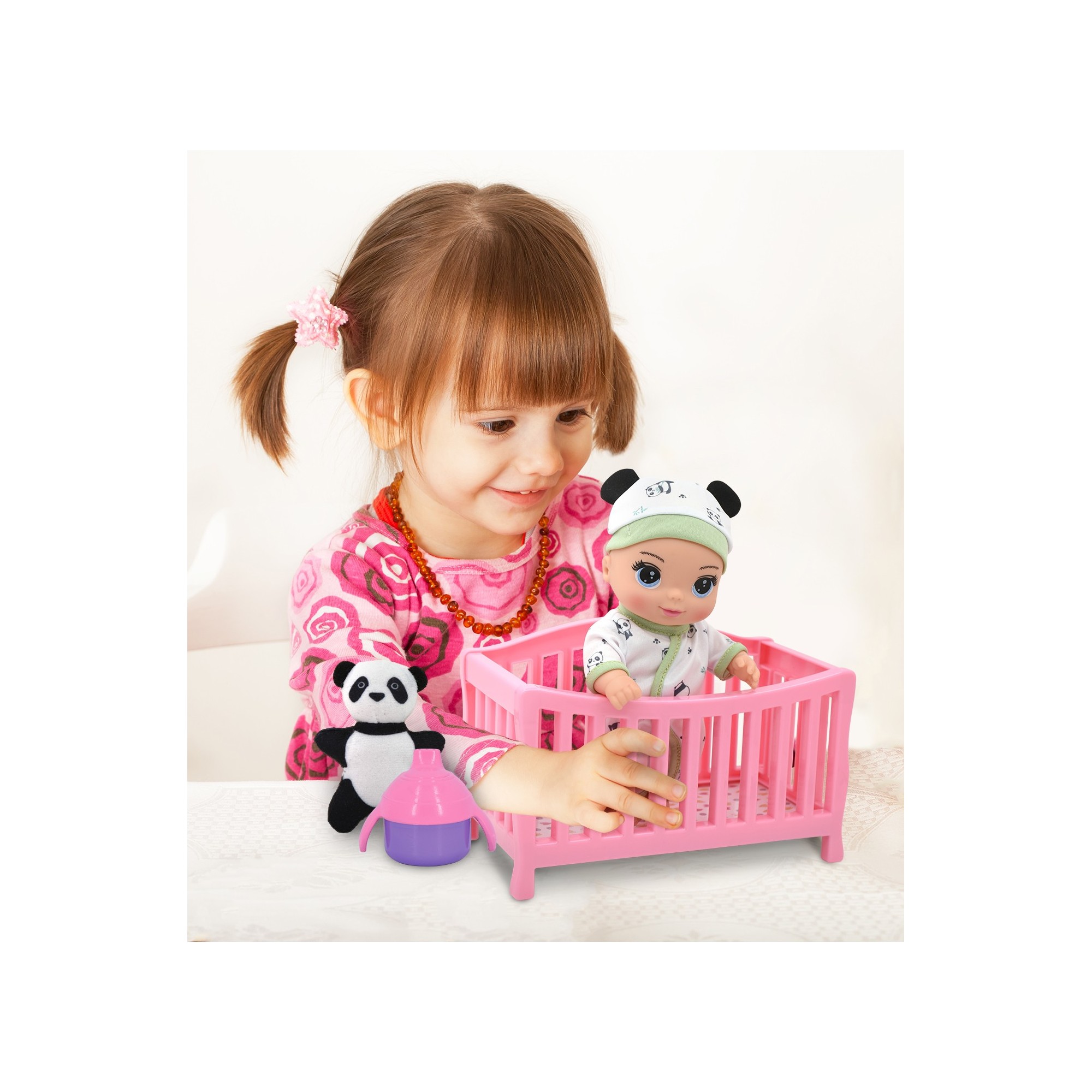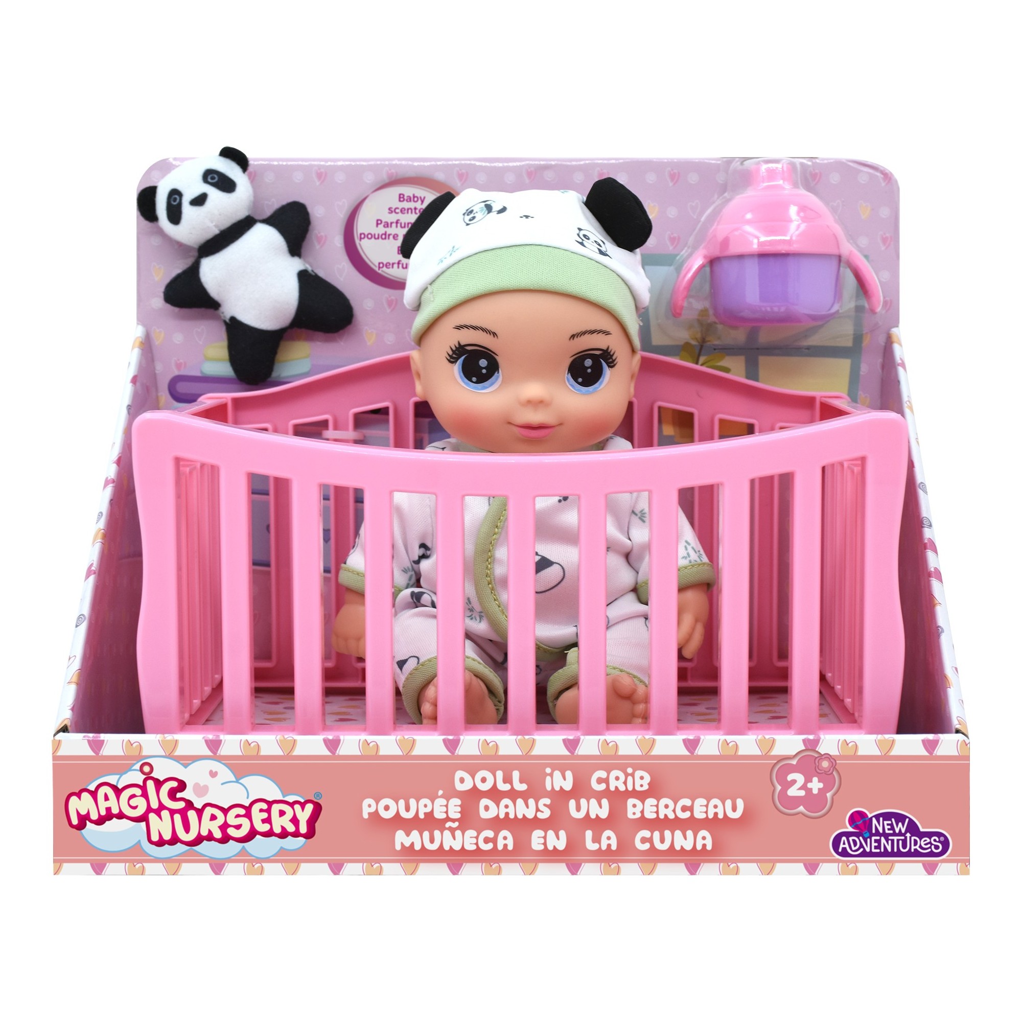 The Magic Nursery Doll in Crib is an adorable 8-inch baby doll playset designed for caring and imaginative play. Featuring a cozy crib, cute accessories, and a baby-scented doll, children can enjoy soothing sleep-time role-play and nurturing fun. Perfect for little ones who love caring for their baby dolls.