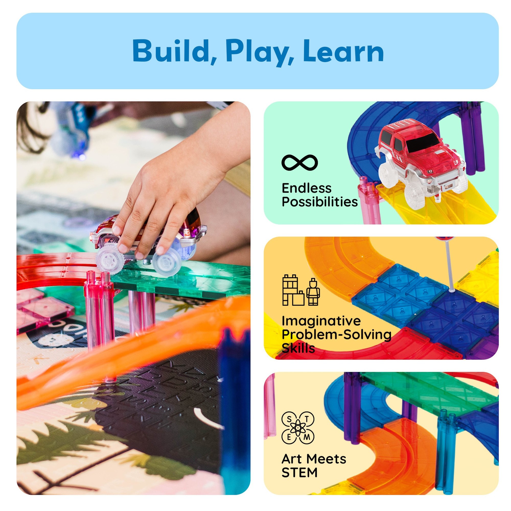 •Supports early STEM learning by blending problem solving, creativity, and spatial reasoning