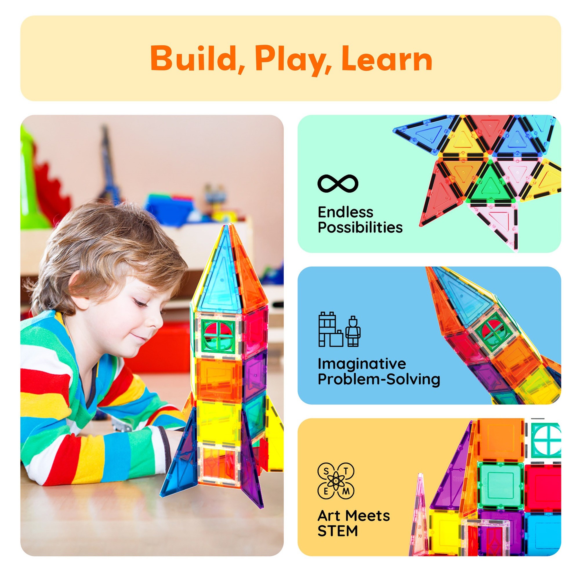PicassoTiles magnet tile building block toys turn learning into an adventure, inspiring imaginative pretend play, problem-solving, and non-stop fun as kids explore the wonders of early educational STEM learning.