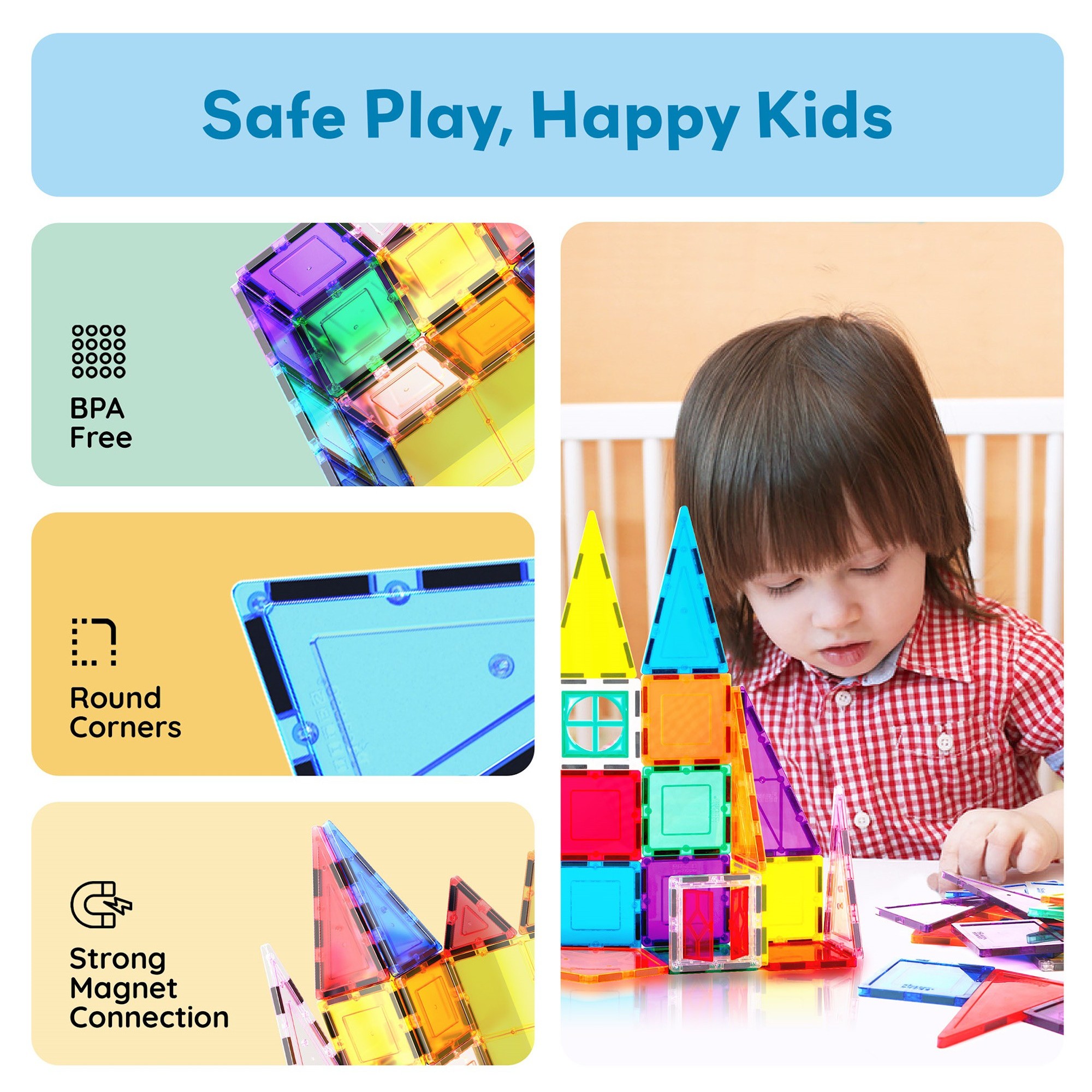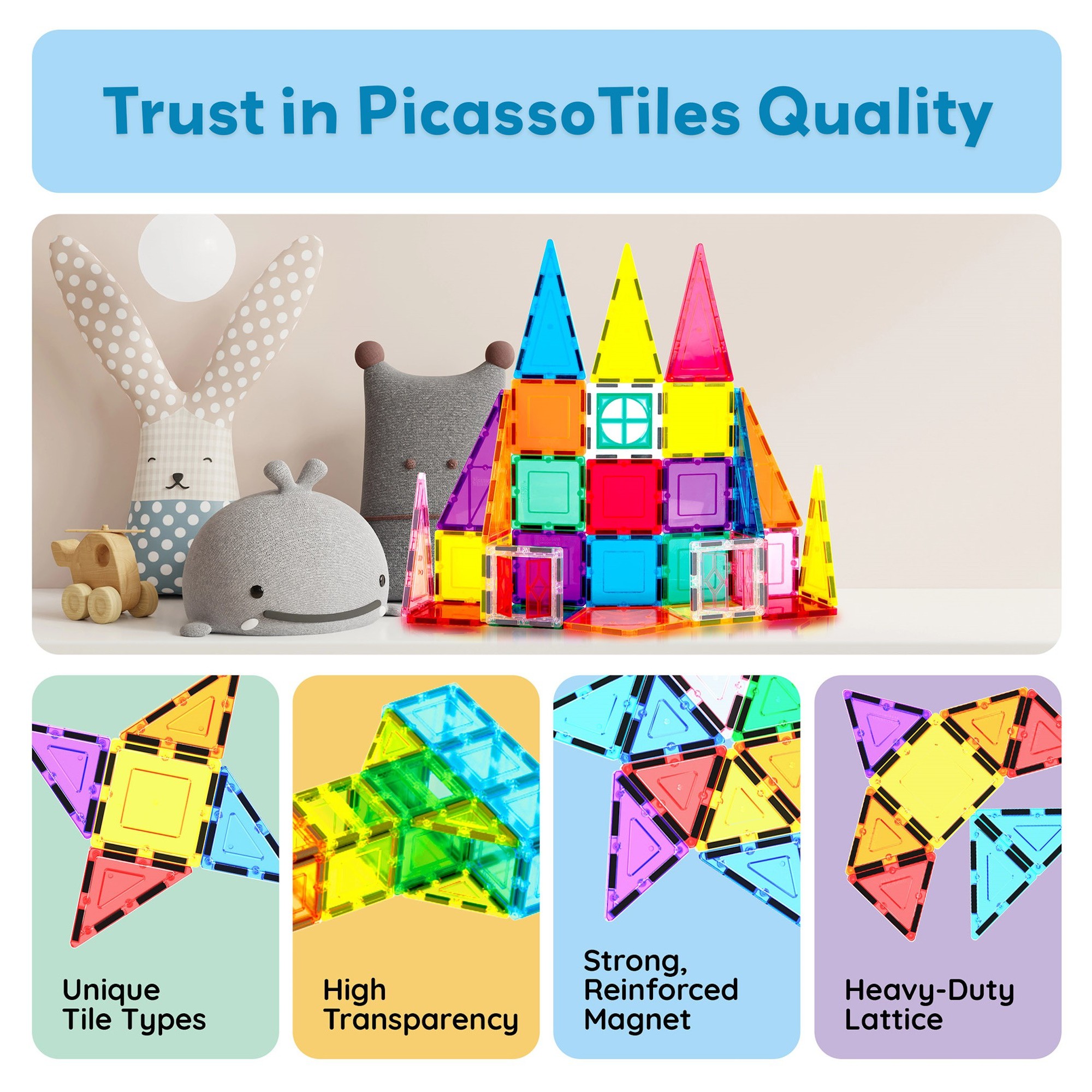 Immersive STEM Learning Experience: PicassoTiles magnetic tile toys engage young minds with hands-on exploration and interactive lessons in Science, Technology, Engineering, and Mathematics (STEM). By promoting crucial skills like hand-eye coordination, problem-solving, and spatial awareness, learning becomes both enjoyable and beneficial.