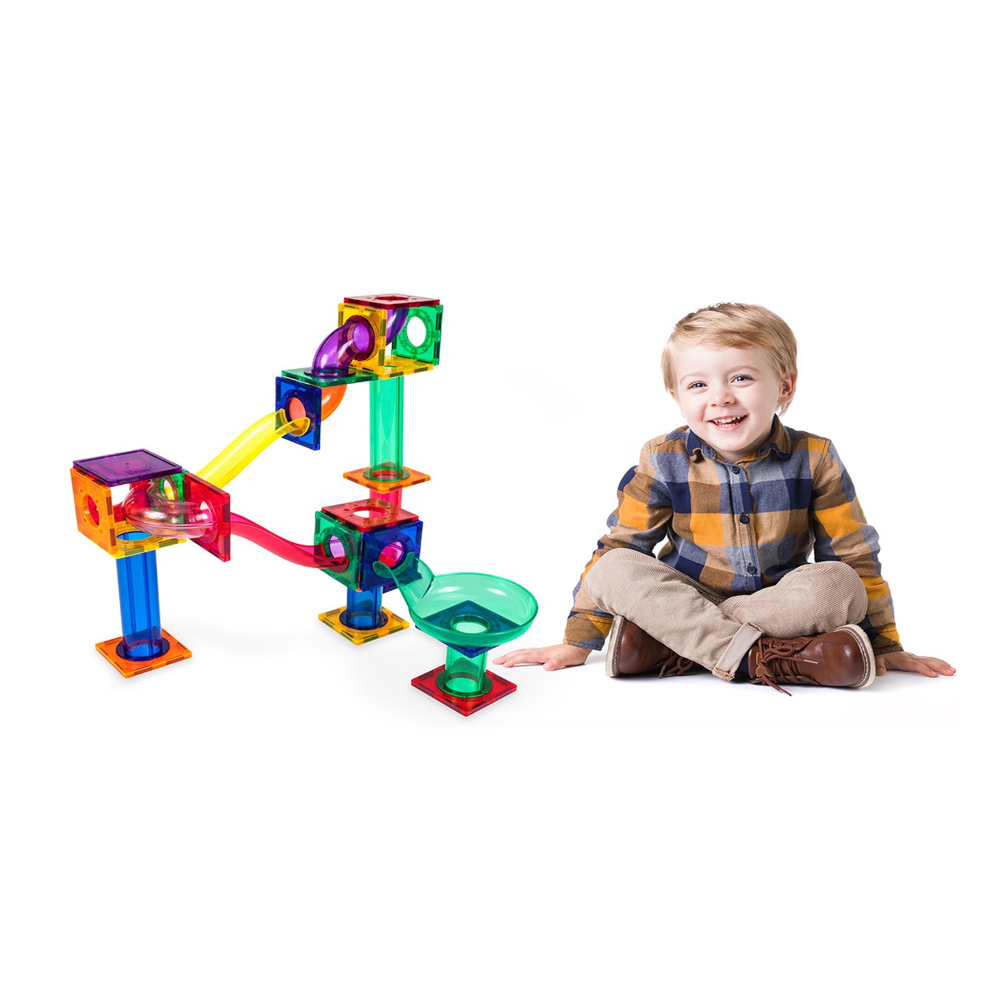 Elevate marble runs to new heights with this PicassoTiles 50 piece magnetic building block set (SKU: PTG50). Watch as marbles cascade through twists, turns, and exciting obstacles, providing endless entertainment and engagement. Experience the thrill of engineering and exploration with our Marble Run with Joints and Funnels!