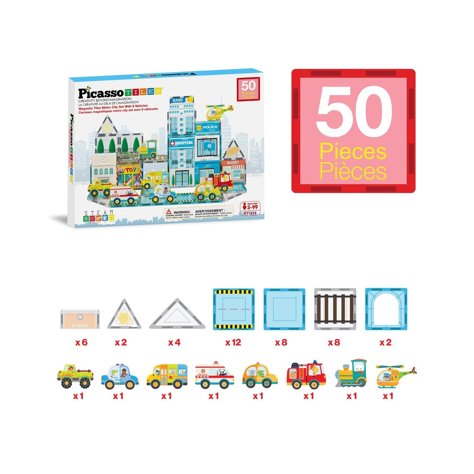 | Ecom Name | Picasso Tiles 50pcs Metro City Set with 8 Vehicles |
