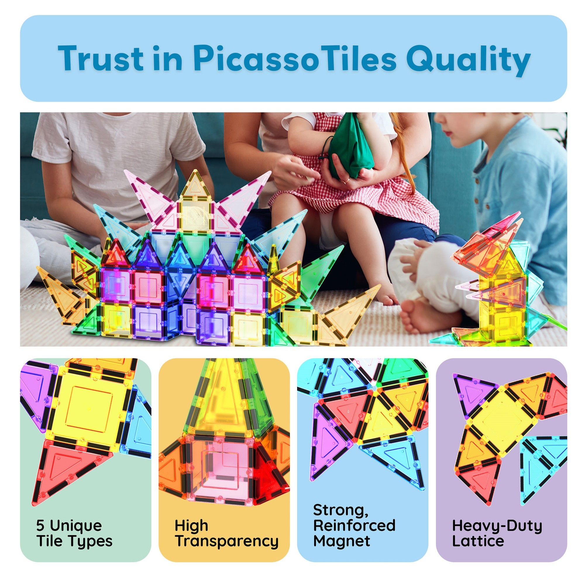 Immersive STEM Learning Experience: PicassoTiles magnetic tile toys engage young minds with hands-on exploration and interactive lessons in Science, Technology, Engineering, and Mathematics (STEM). By promoting crucial skills like hand-eye coordination, problem-solving, and spatial awareness, learning becomes both enjoyable and beneficial.