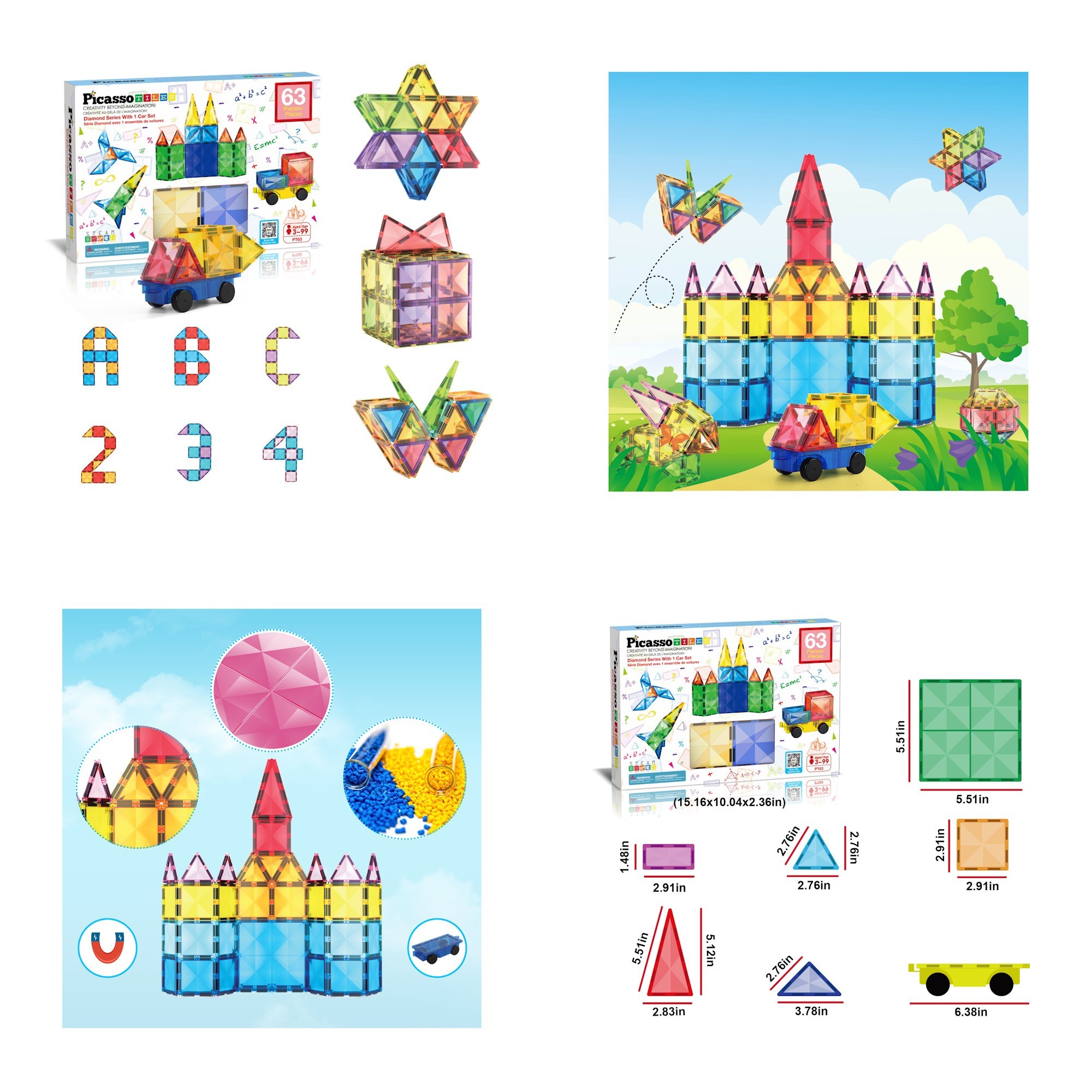 | Ecom Name | Picasso Tiles 63pcs Magnetic Tiles in Blister with car base |