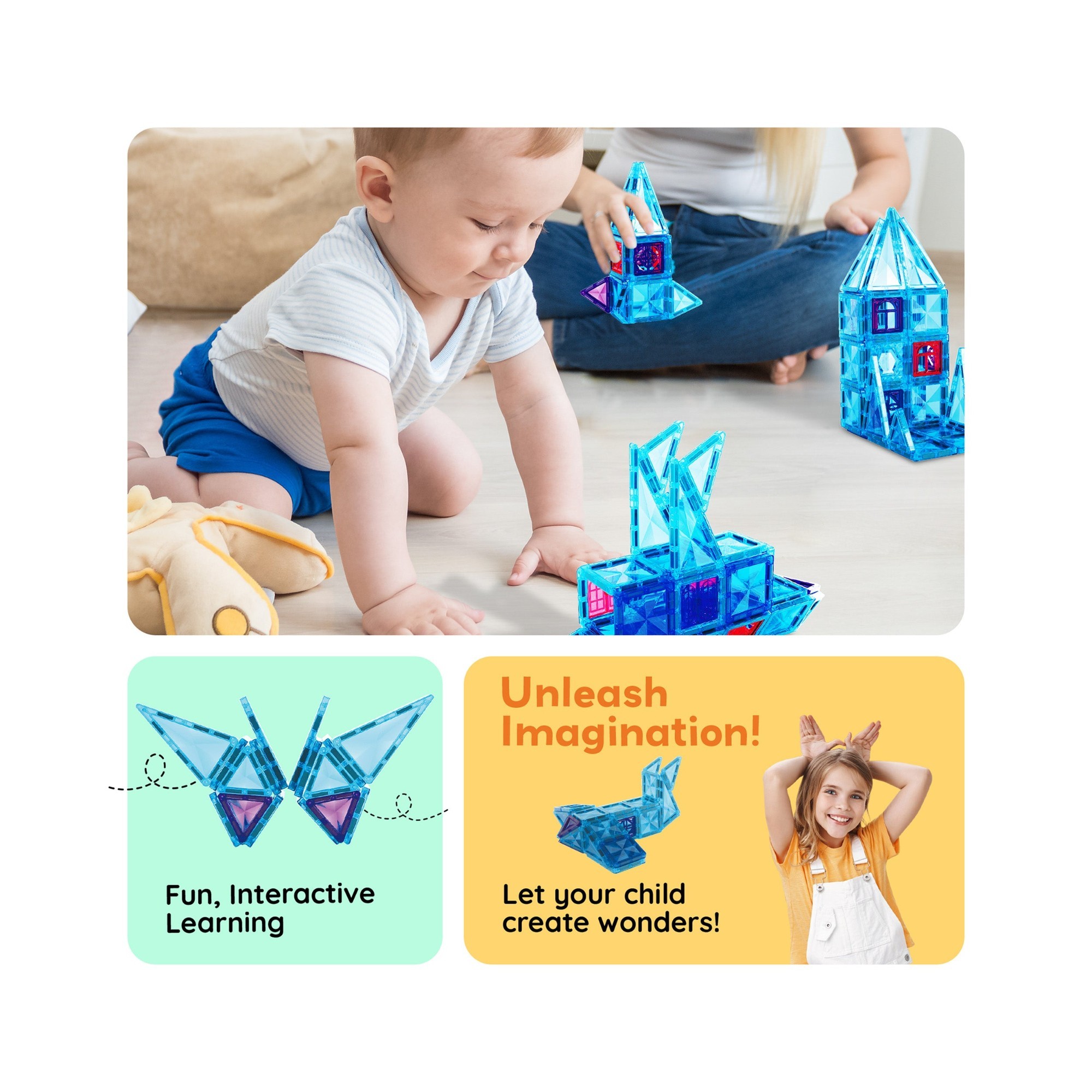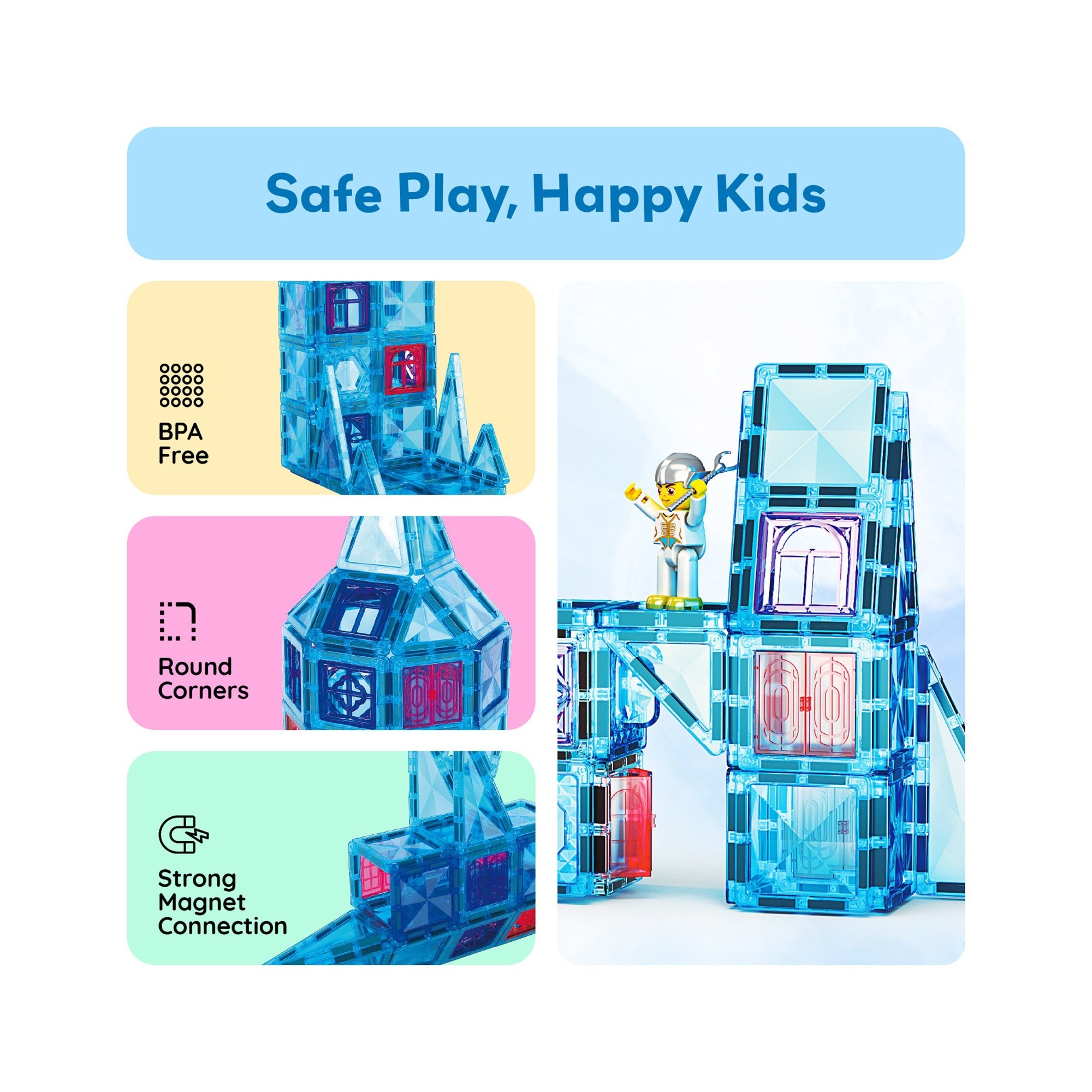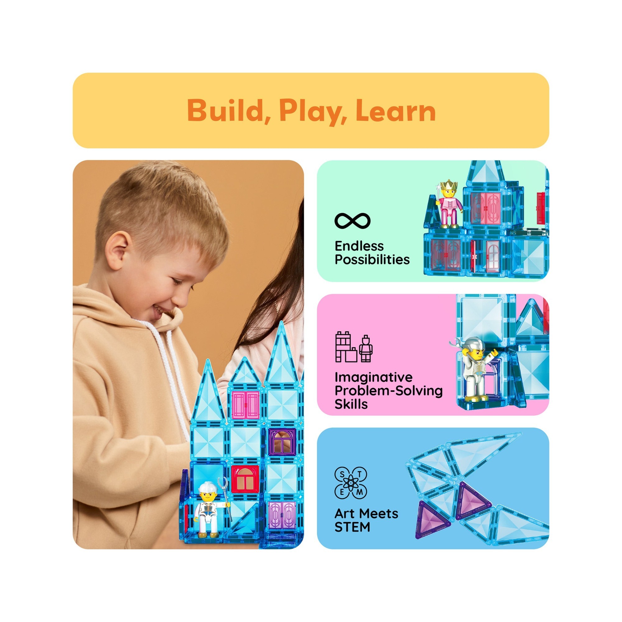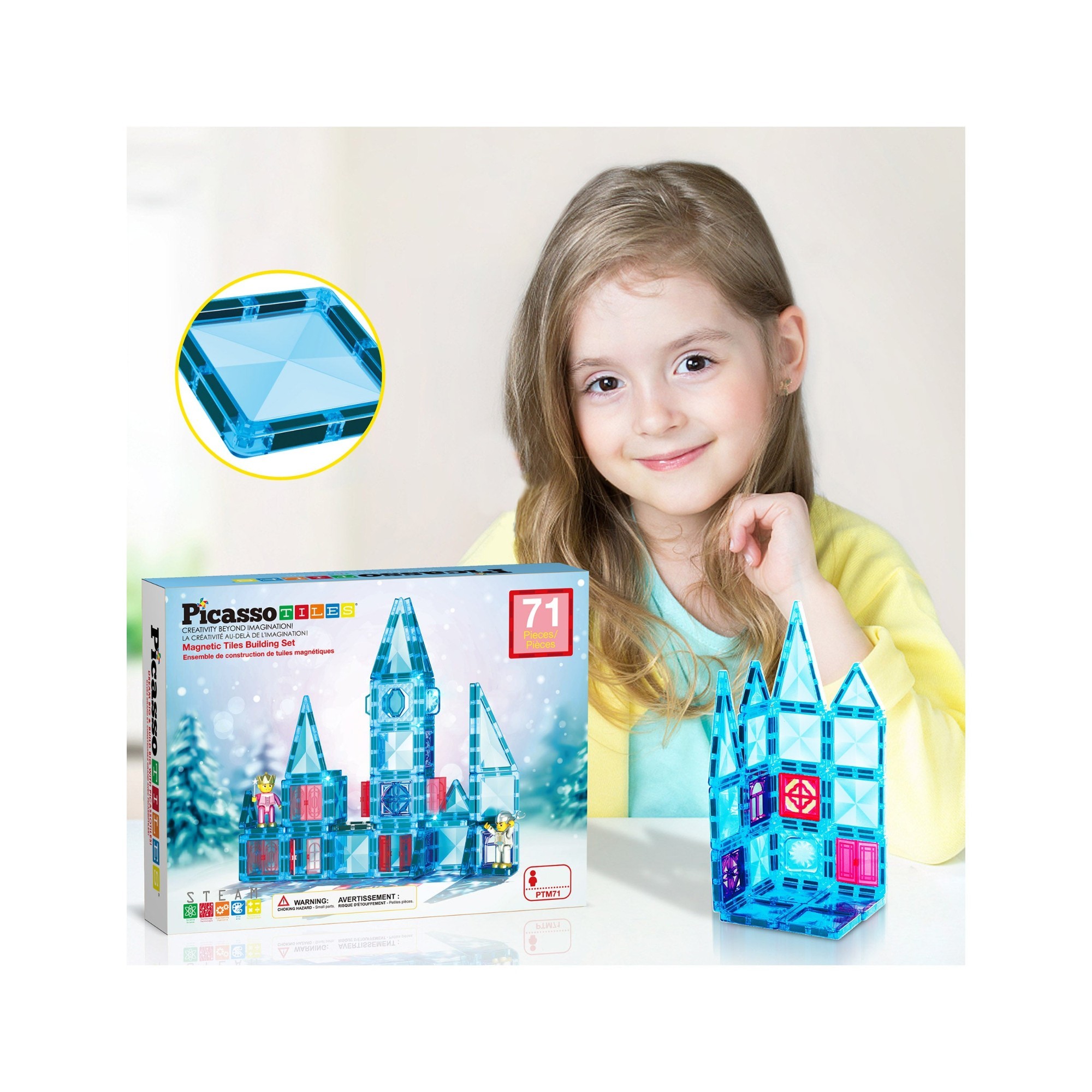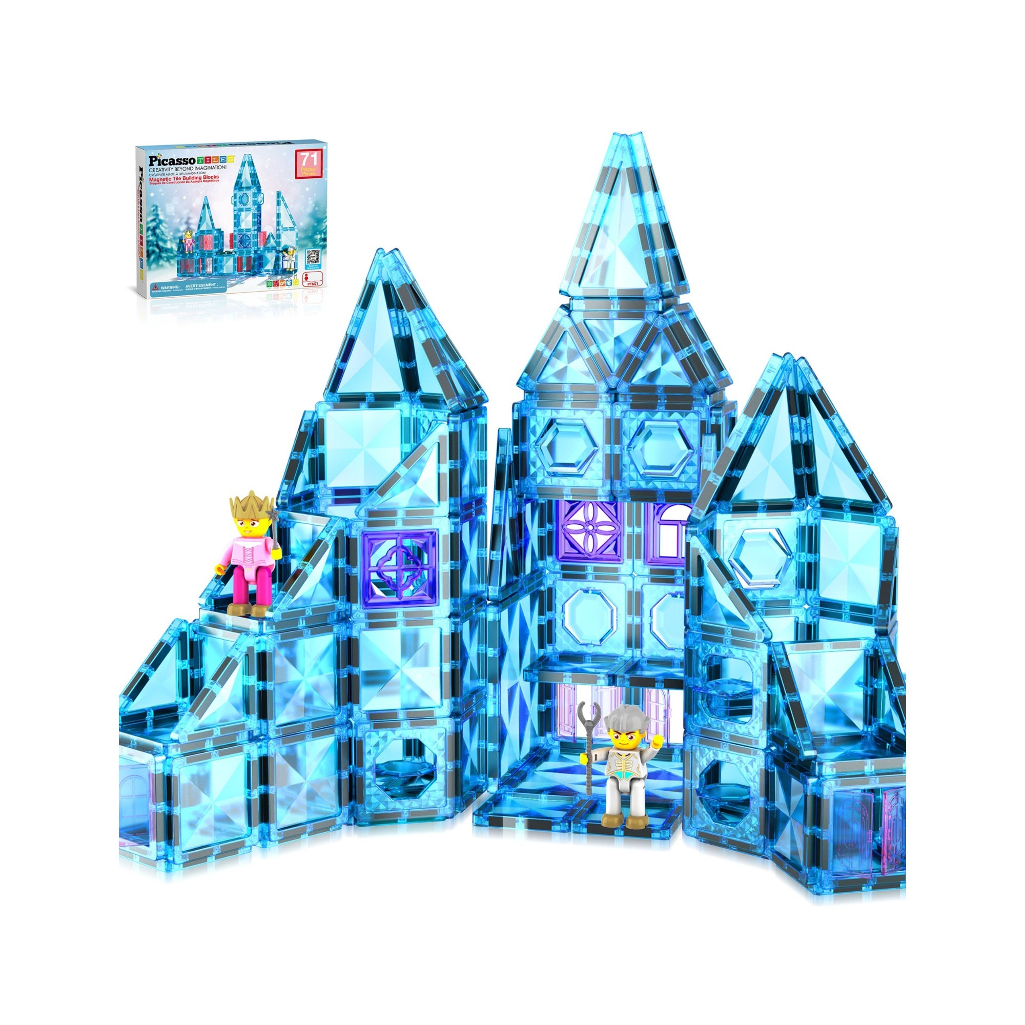 PicassoTiles Mini Diamond Series Winter Castle Magnetic Building Blocks (PTM71) is a kids travel toy that features 71 portable pieces, perfect for on-the-go creativity. Toddlers and children of various ages can build fun structures while exploring hands-on STEM learning. Encourage imagination, creativity, and nurture young minds with this travel-friendly magnetic block set!