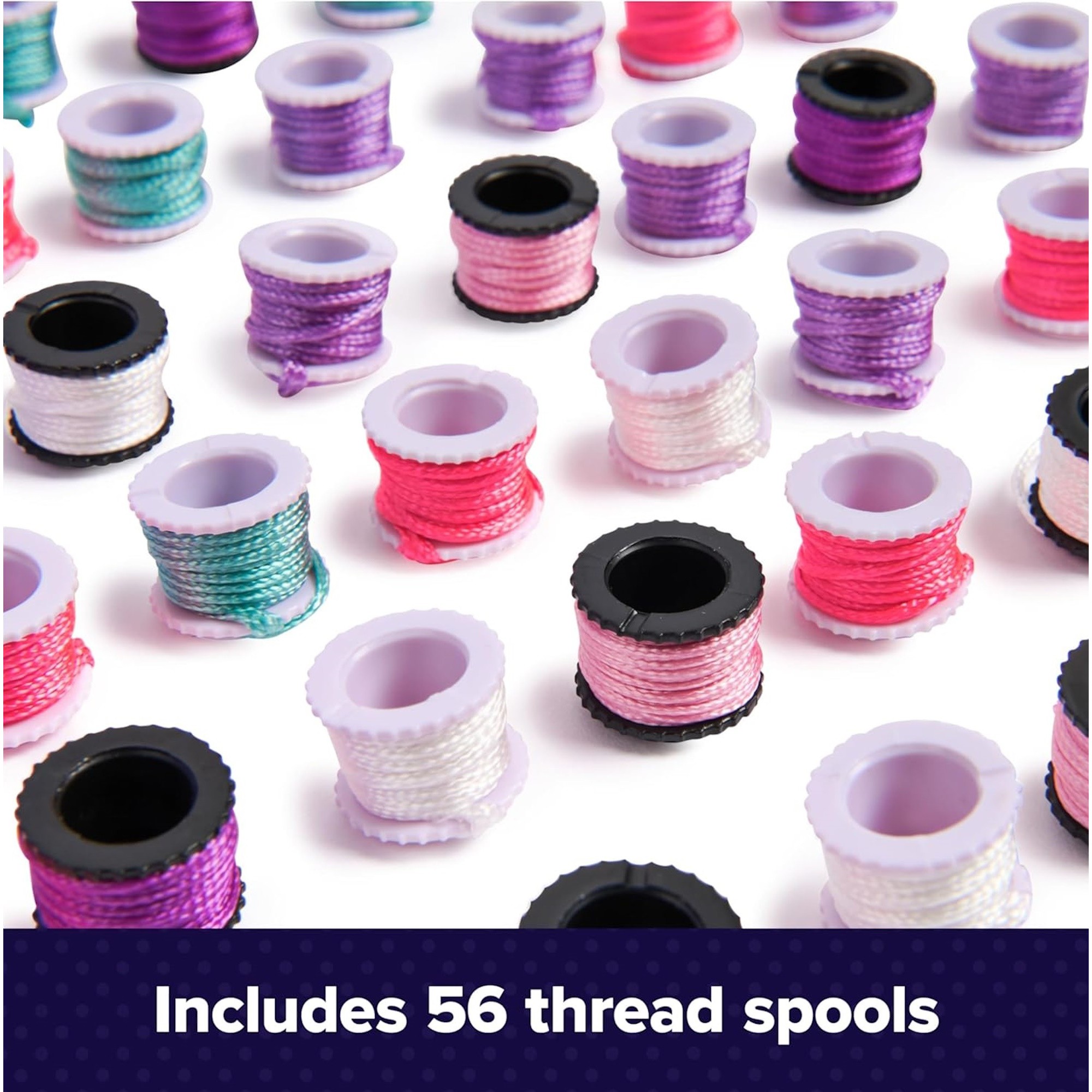 - Complete jewelry kit: Everything needed for up to 5 bracelets and 2 necklaces – 56 thread spools, 7 beads, a design book, and more. This Cool Maker bracelet maker is a fun gift for kids ages 8 and up