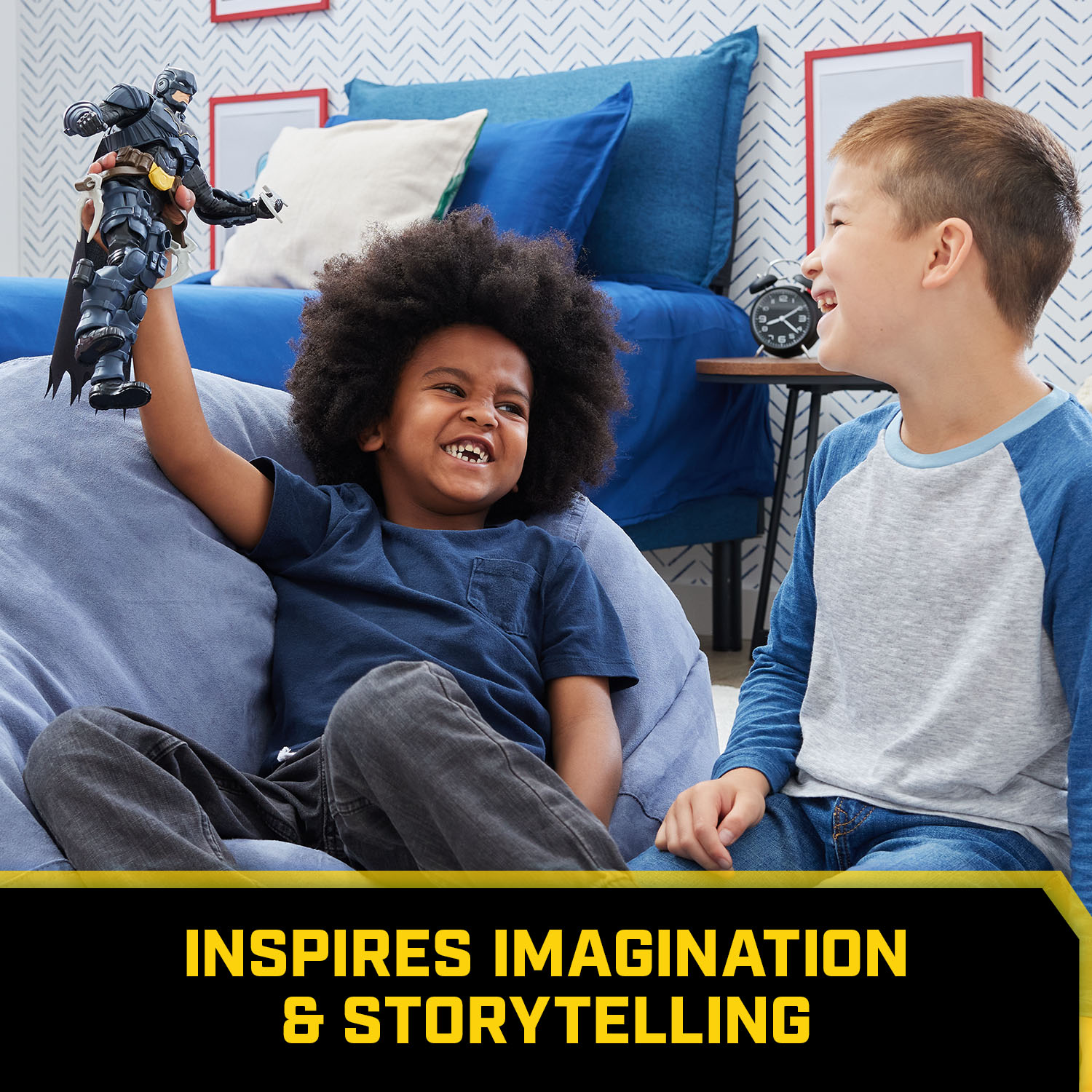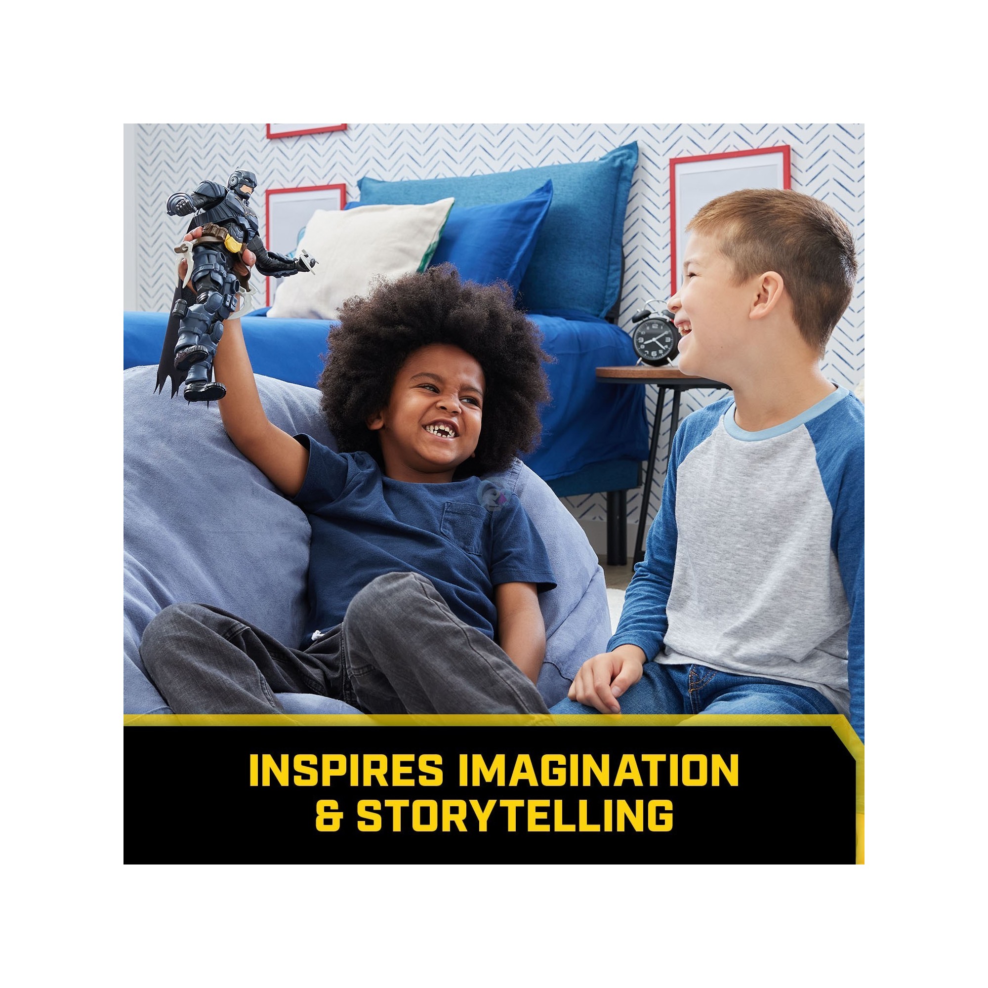 • 16 ARMOR ACCESSORIES: Prepare Batman for any mission with 16 interchangeable armor pieces, including iconic Batarang, grappling hook, and more - providing endless looks!