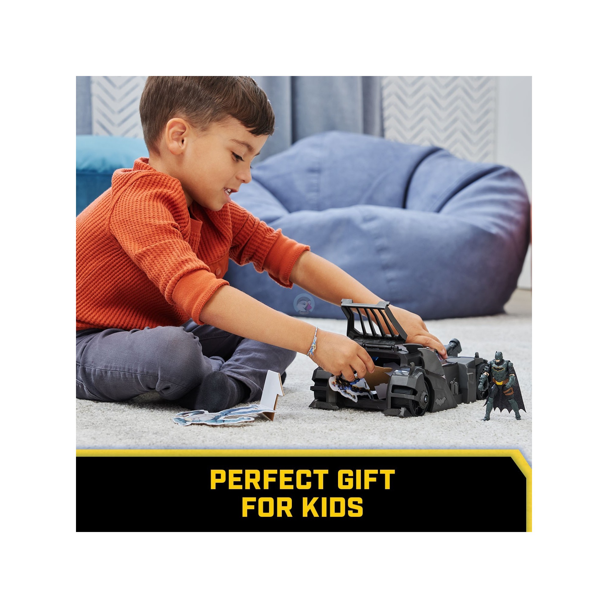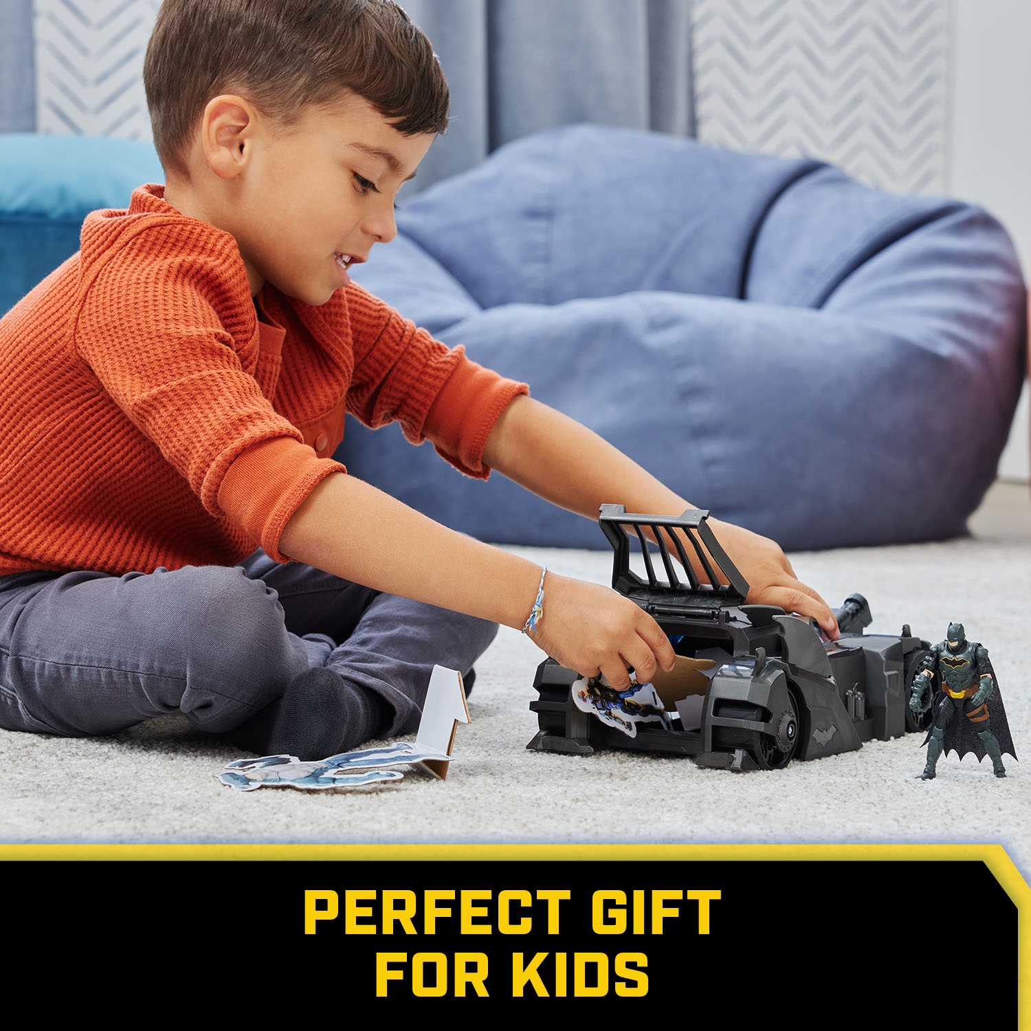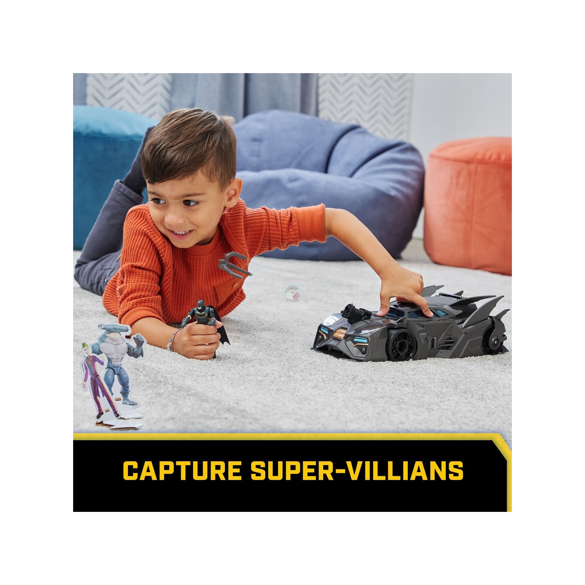 • CRUSADER BATMOBILE PLAYSET: Let your child experience thrilling Gotham City adventures with the Crusader Batmobile! This set includes an exclusive 4-inch Batman action figure and 3 Super-Villain paper figures