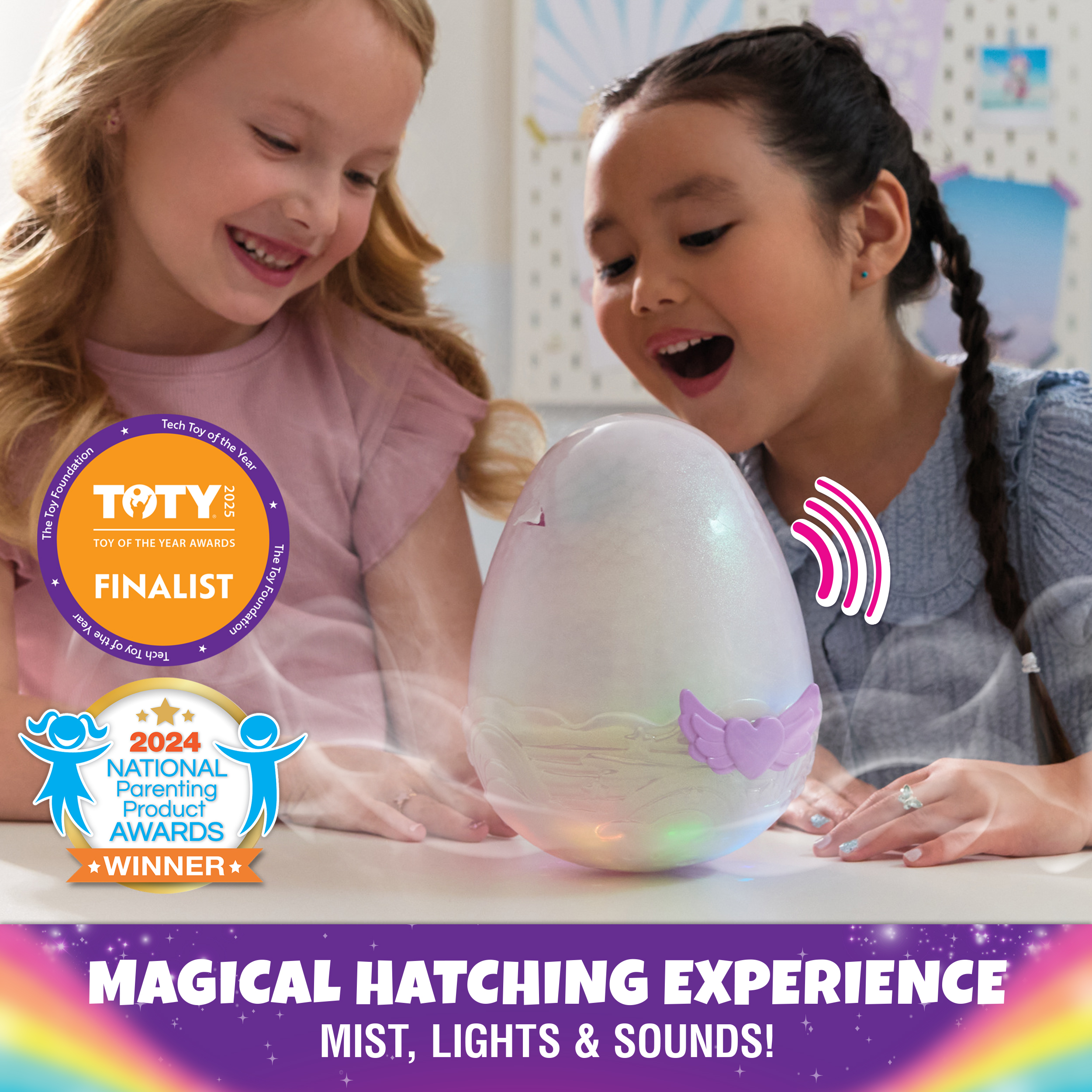 • MAGICAL HATCHING EXPERIENCE WITH MIST, LIGHTS & SOUNDS: Love your Hatchimal to life. Cuddle, tap, lift & rock the Hatchimals egg until it glows rainbow - magical mist builds the anticipation & music plays as your character hatches.