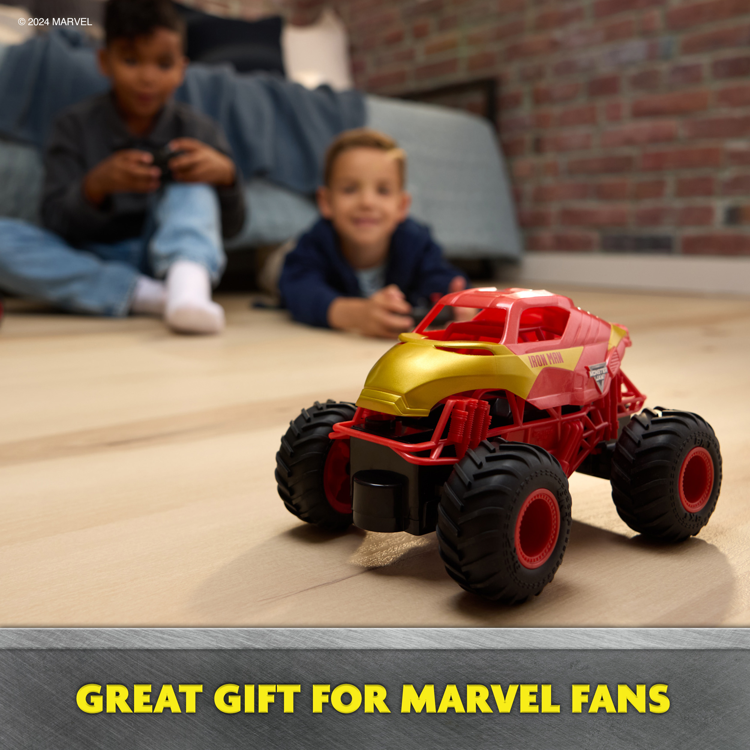 • MONSTER JAM IRON MAN TRUCK: Command the living room or backyard with Iron Man's RC Monster Truck! Built for indoor/outdoor action and tailored for young enthusiasts, this 1:24 scale truck delivers massive Monster Jam excitement and thrills!