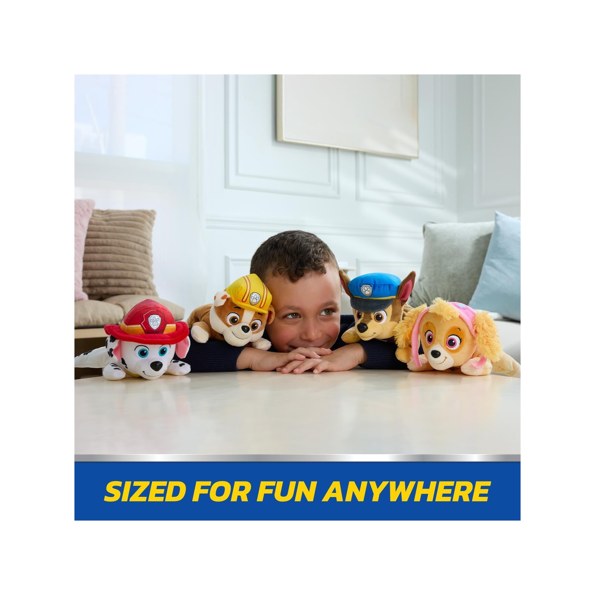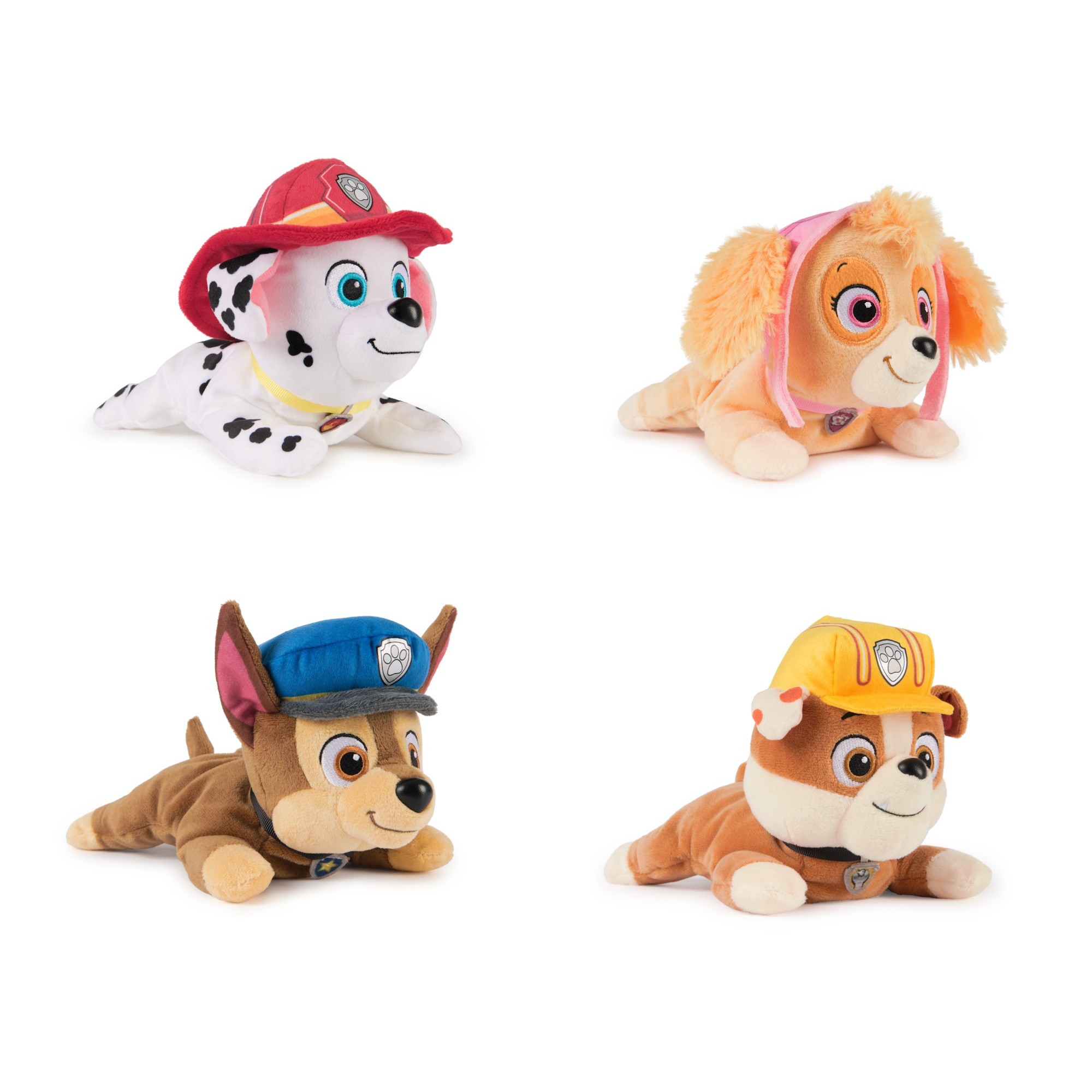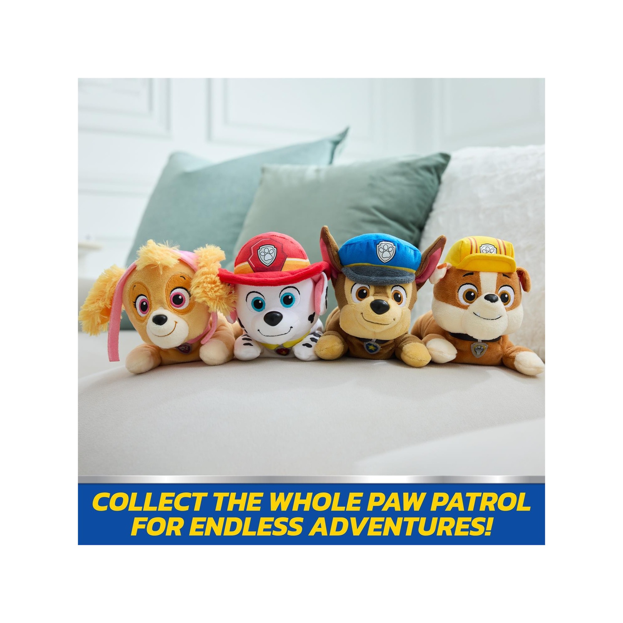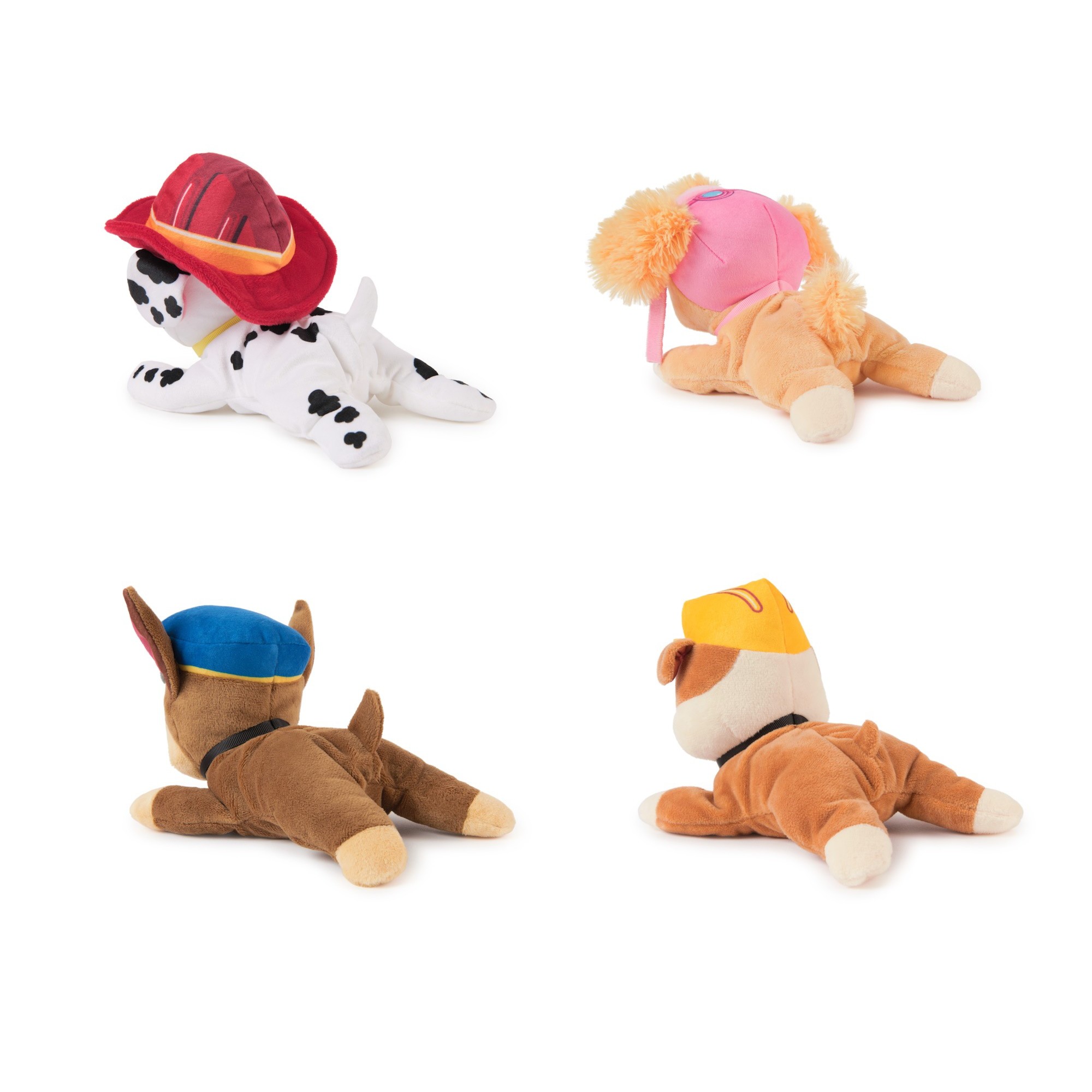 • LOUNGING PAW PATROL PLUSH: The PAW Patrol pups are here as soft 8' plush toys! These plushies feature the brave and adventurous puppies with hats and collars, in a relaxed lounging pose, weighted with pellets in their hands, feet, and squishy bodies.