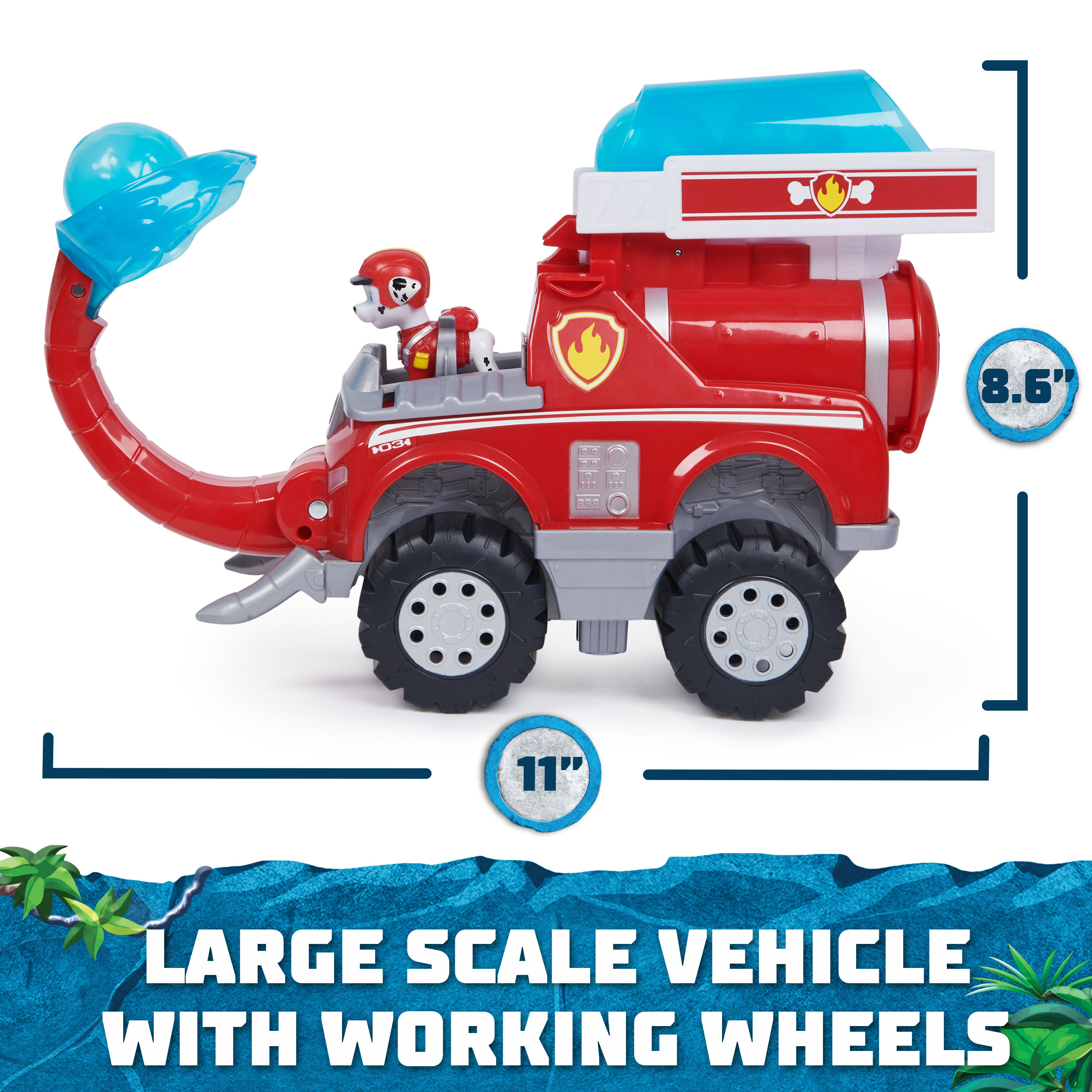 • ELEPHANT FIRE TRUCK TOY: When its time for an exciting rescue, clip Marshall into the drivers seat and race to the rescue, using the elephant tusks and oversized wheels to clear away any obstacles!