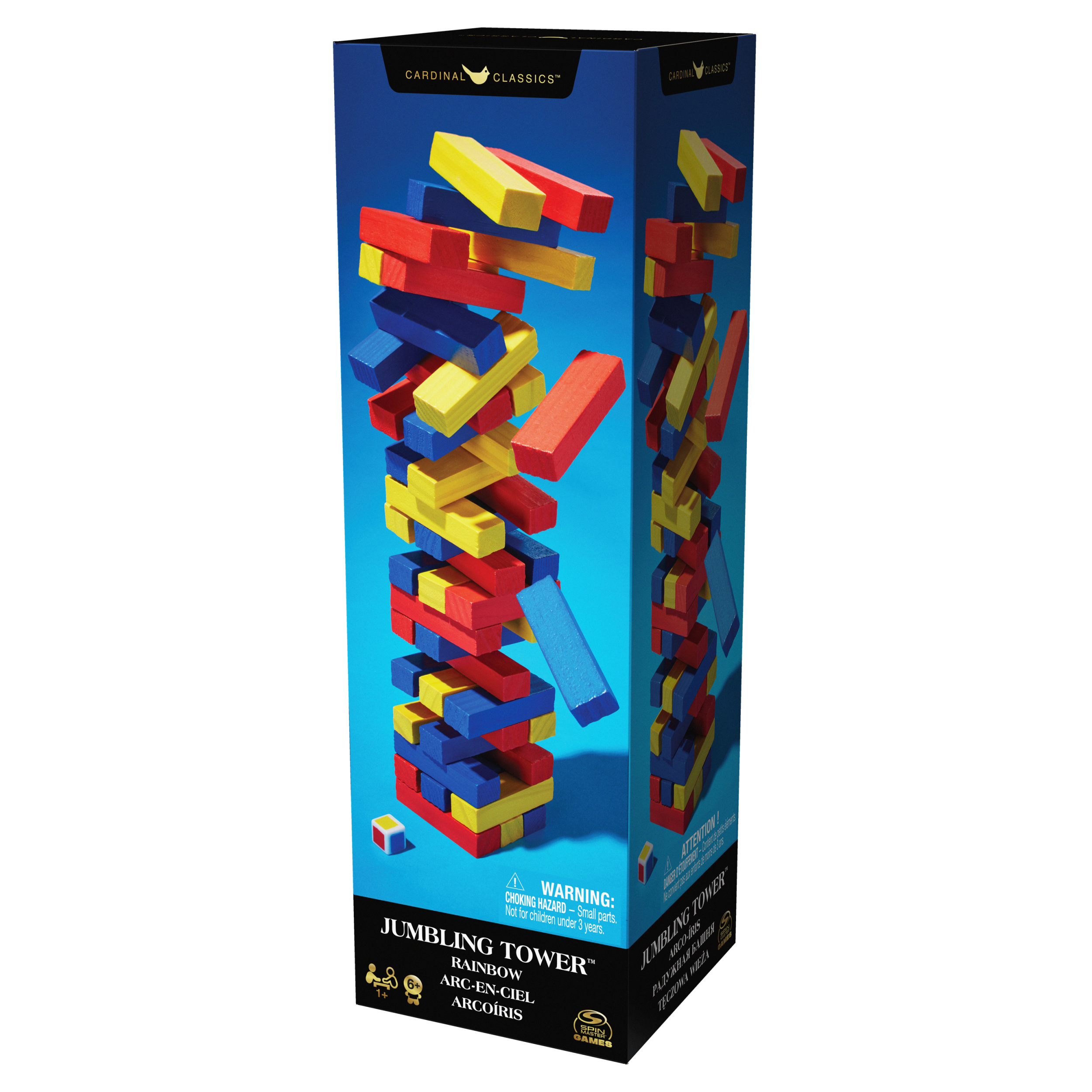 • Cardinal Classics, Rainbow Jumbling Tower Regular Size Wooden Blocks Tumbling Building Toppling Wood Party Board Game, for Adults and Kids Ages 6 & up