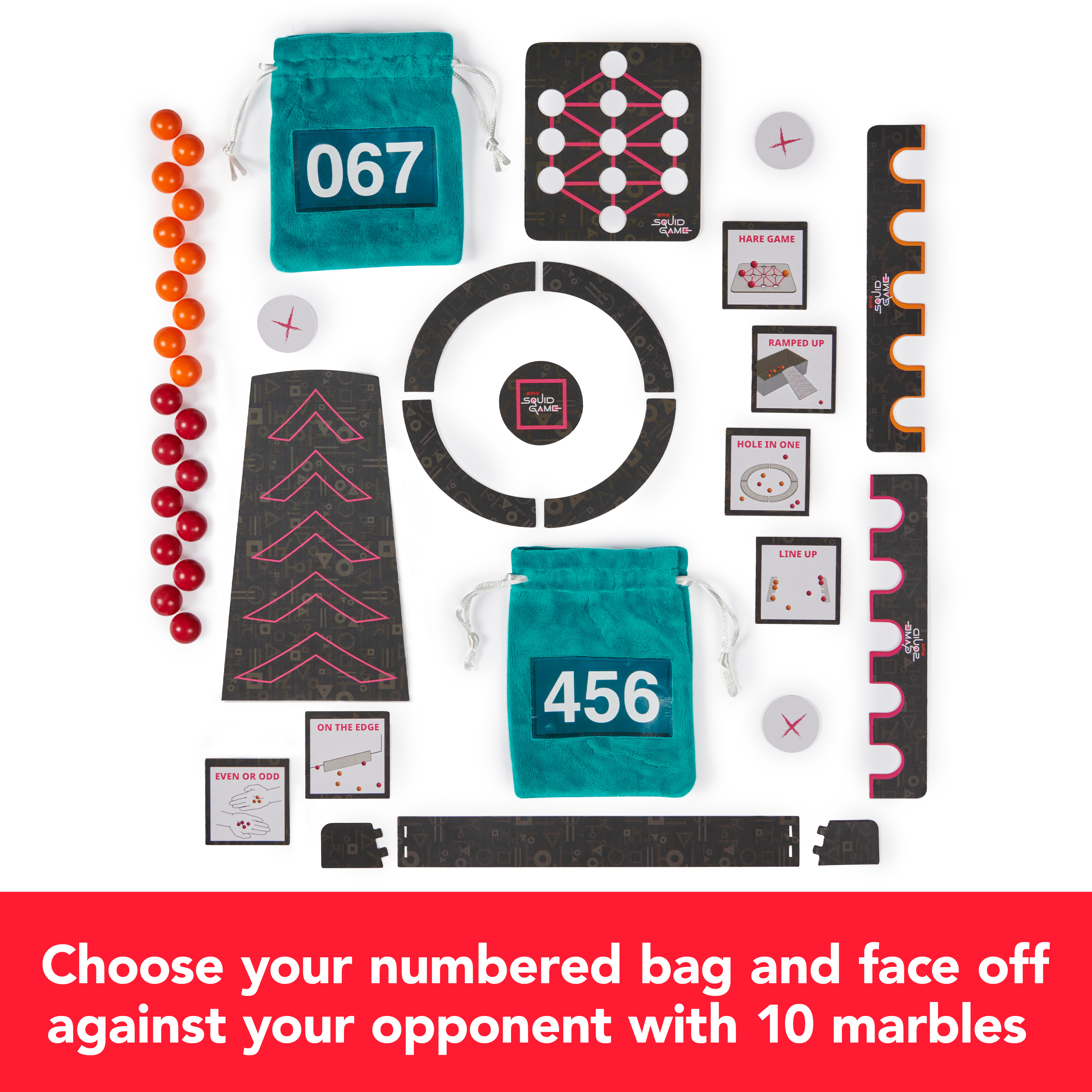 • SQUID GAME MARBLES: Play 6 exclusive marble challenges inspired by the jaw-dropping Netflix show. Choose from games in easy, medium, or hard levels. Perfect for parties- adult games for game night, board games for adults & more.