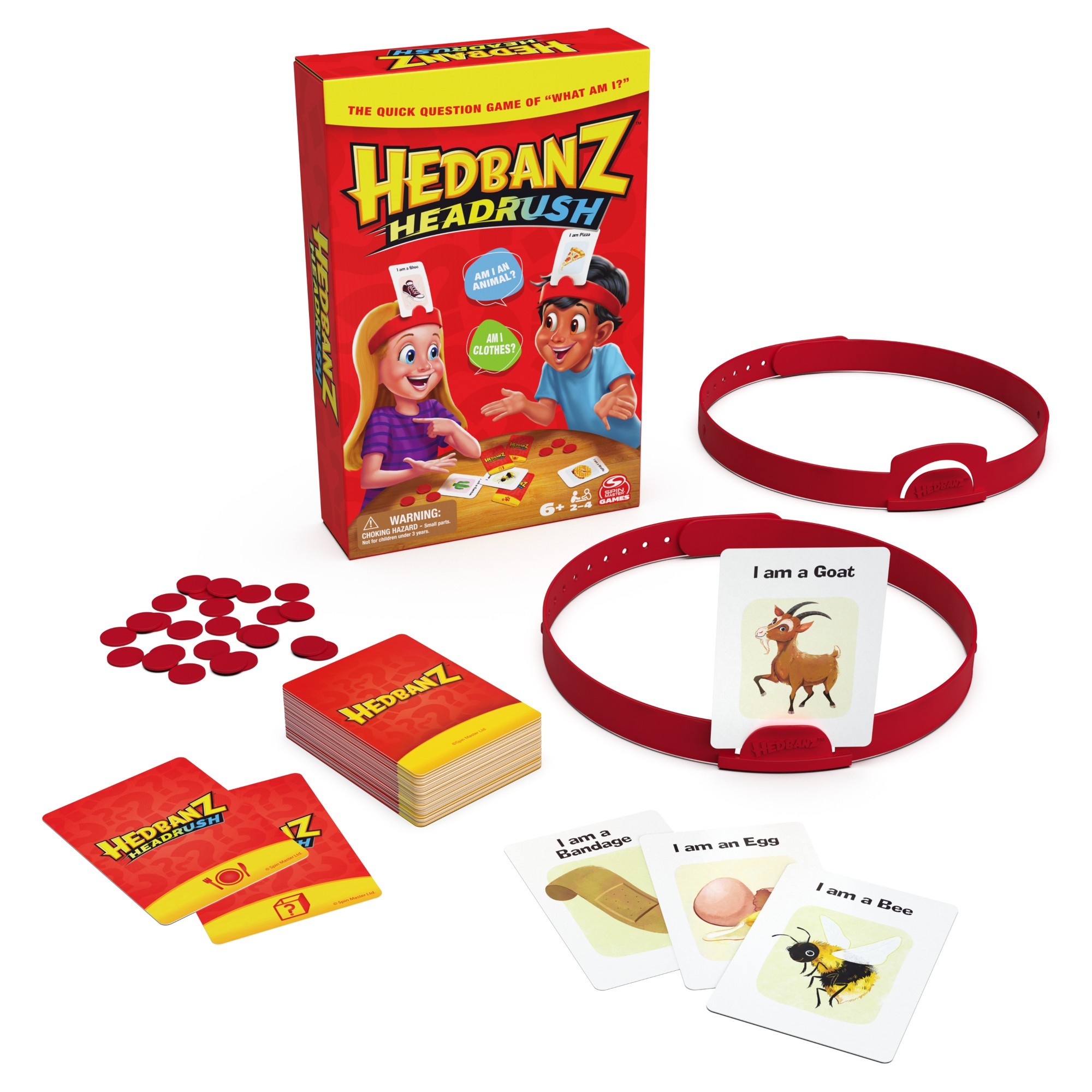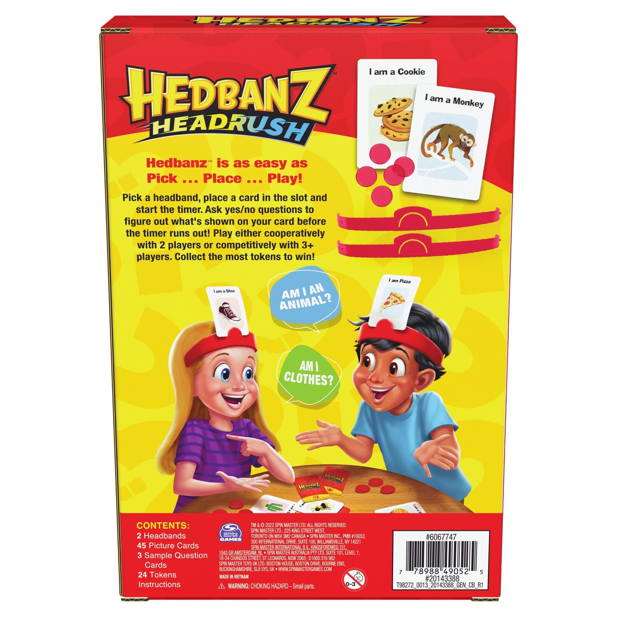 Meet Hedbanz Headrush from Spin Master Games! Hedbanz is a must-have in your collection of family games for kids and adults. It is for 2-4 players, for everyone ages 6 and up. To play as a 2-player cooperative game- Ask yes or no questions and correctly identify as many cards on your head as possible until the 90 second timer runs out. Then, your friend takes a shot. See how many tokens you can score together after each player takes 2 turns! Want more players to join the fun? To play as a 3-4 player competitive game- Instead of using both headbands, players can take turns wearing a headband on their turn. Player with the most tokens wins! Spin Master brings the fun of children's entertainment home by offering a range of kids toys & games including baby toys, toys for girls, and board games. Collect your favorite stuffed animals, fidget toys, RC cars, action figures, dolls & accessories + more. From special gifts for men to baby & toddler toys for kids at heart, make your birthday gifts a breeze by shopping our diverse catalog selection. Still hungry for more, explore kids games, pool toys, outdoor games, and monster trucks for any time of the year. Get creative with arts and crafts, building toys and RC cars and take the action to the table with jigsaw puzzles for adults or card games. Spin into the sandbox today with Spin Master!