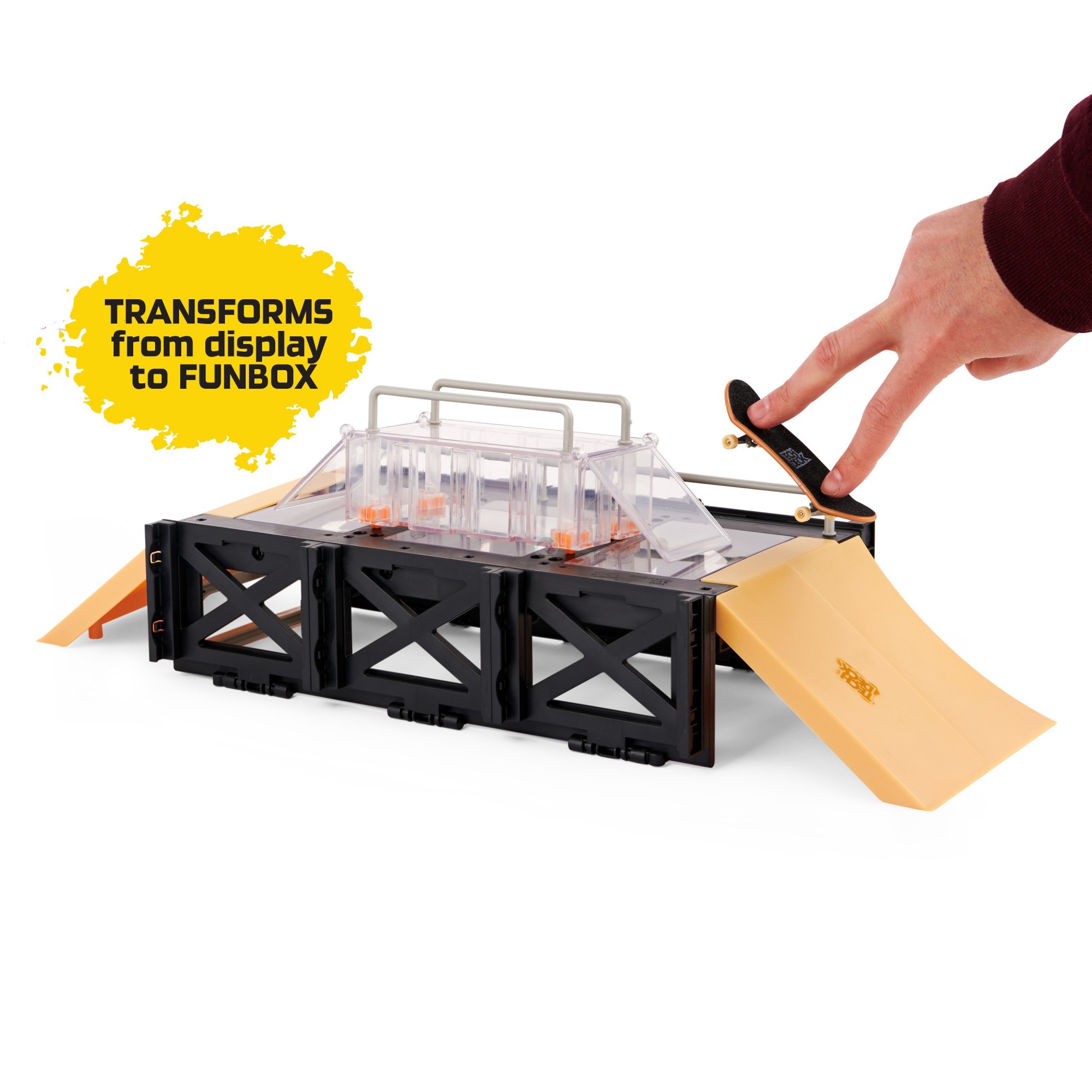 • TRANSFORMING RAMP SET: Transform from display to funbox with all your boards still intact. You can fold out the case to convert to a ramp with a funbox and rails to jump and grind!