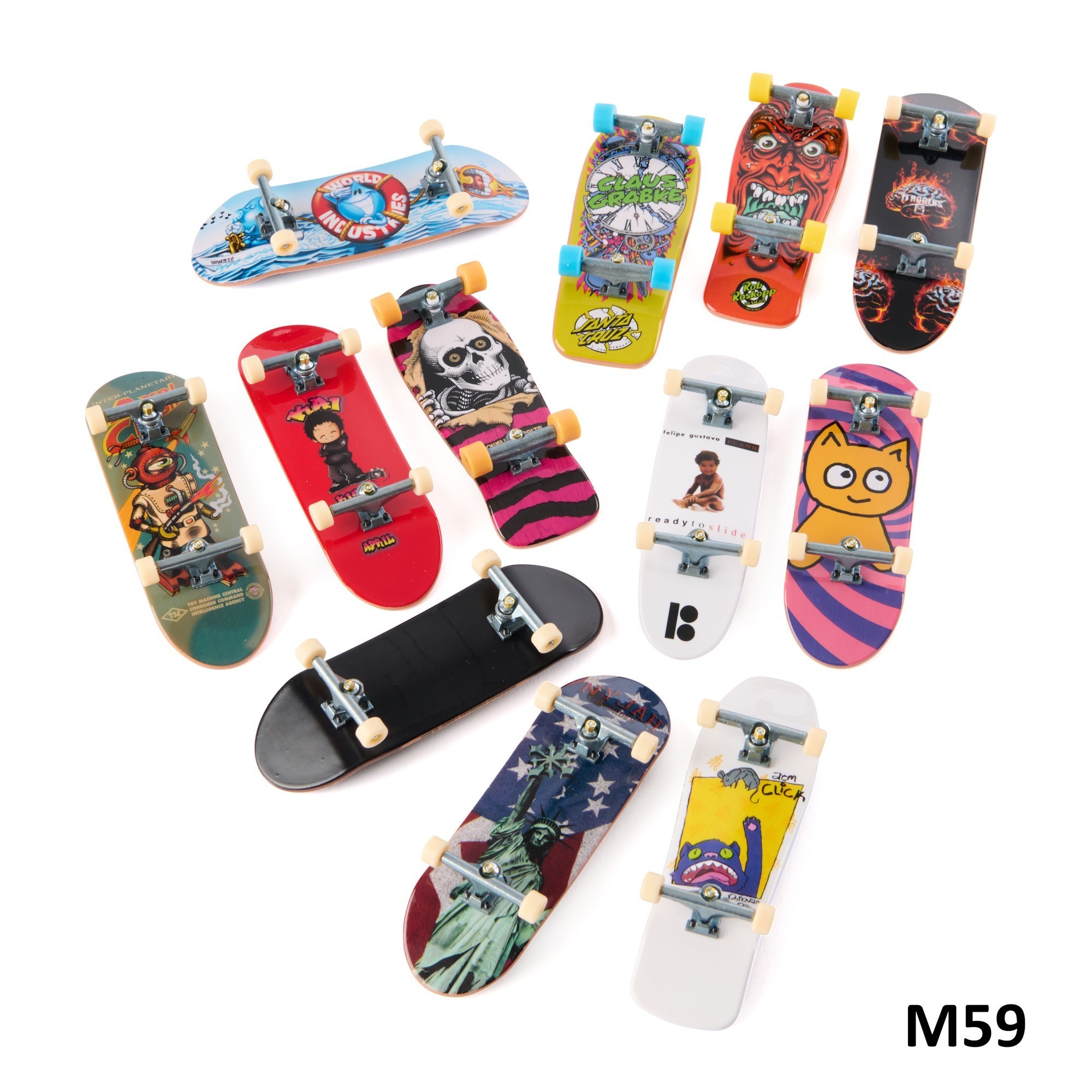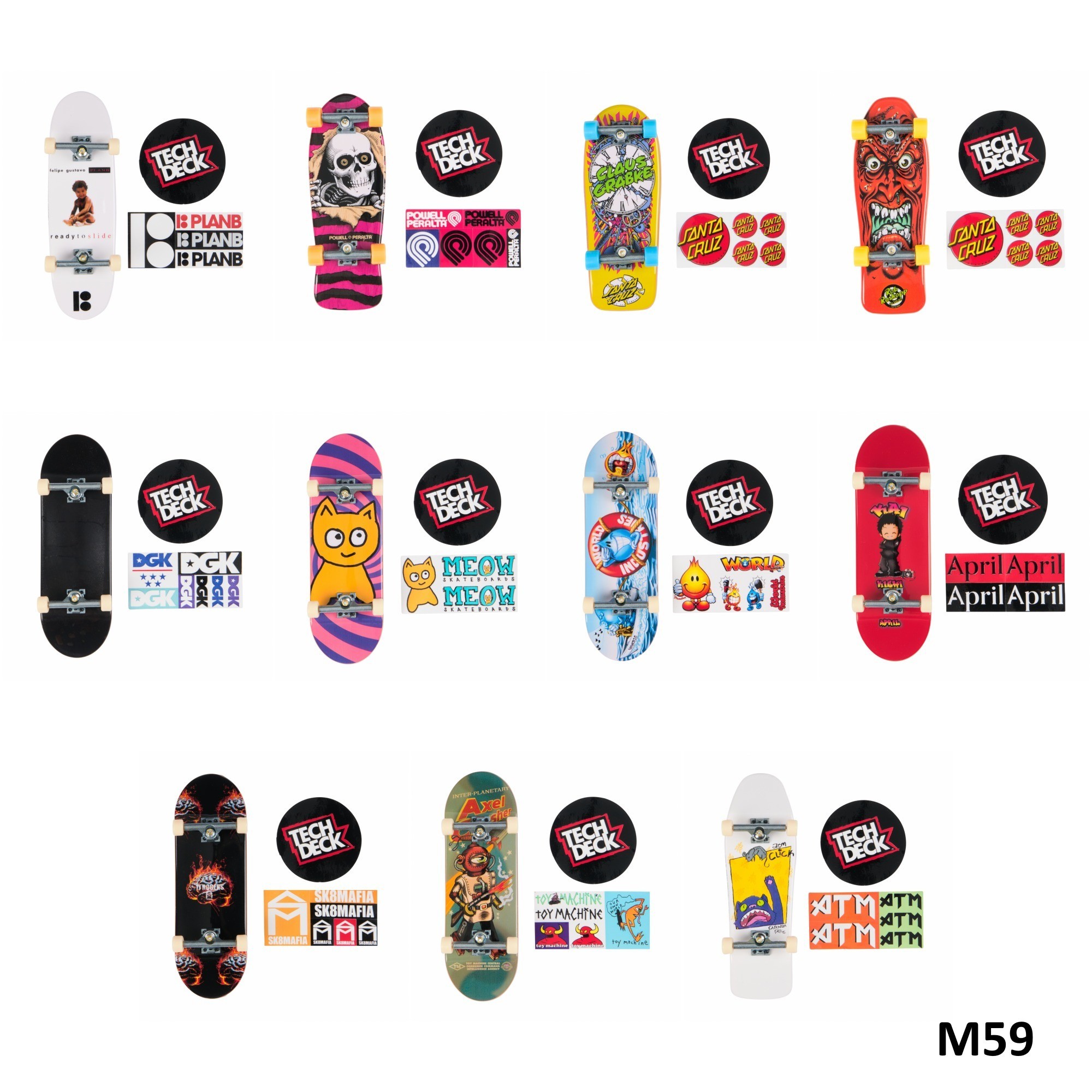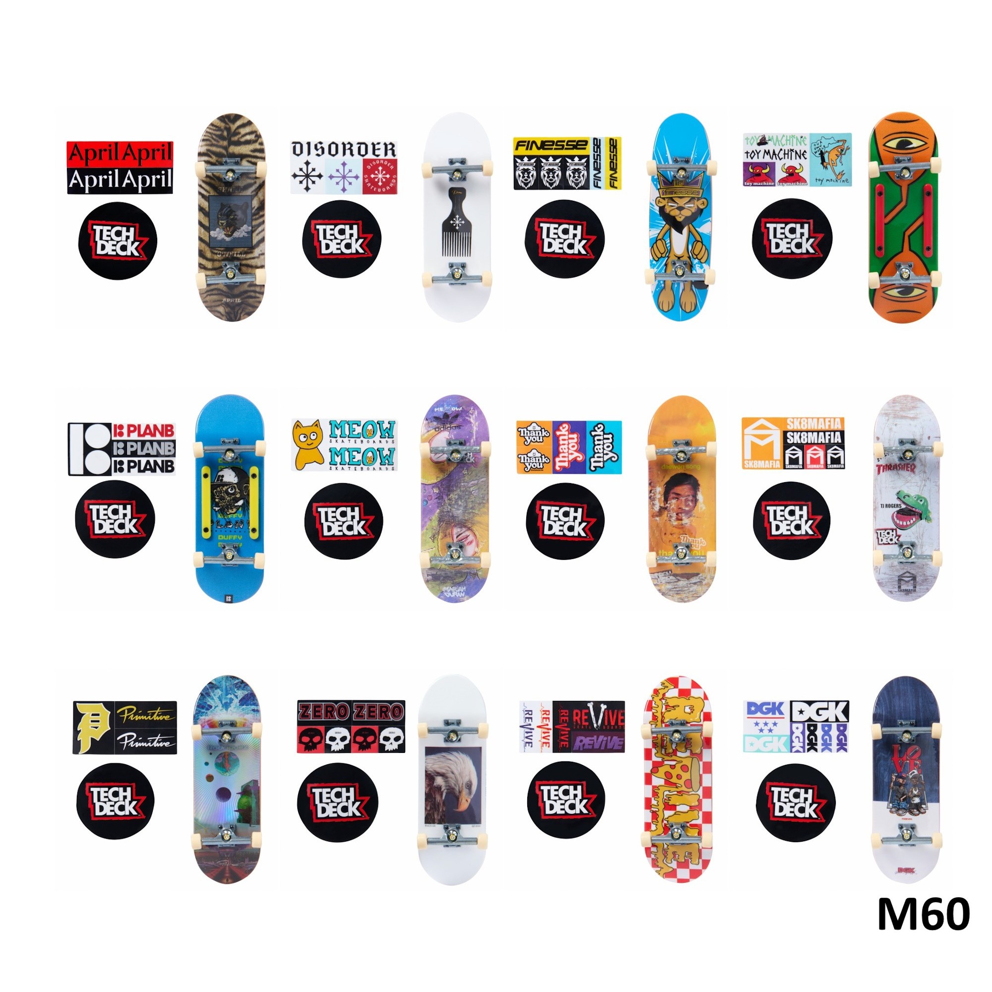 TED Tech Deck 96 mm boards Fix12 real boards. Real Graphics Real stunts. Perform legendary tricks with Tech Deck's authentic 96mm fingerboards. The Tech Deck fingerboards are designed from front to back to recreate the feel of a real skateboard. Each fingerboard features authentic graphics from the biggest skate brands in the world. Now collect boards with legendary designs from Blind, Toy Machine, Alien Workshop, Finesse, Revive, Primitive, Zero, Flip and more. With so many options, you never know which board you get. This allows you to put together a collection worthy of an avid fingerboard fan. Each board includes sticker sheets ideal for creating a custom board. Like a pro fingerboarder learn the basic tricks and then perfect kickflip, ollie and shove-it on the railing. Tech Deck 96 mm skateboards are suitable for skateboard lovers. Collect them all now and become a professional fingerboarder. Contents: * 1 complete board * Sticker sheet