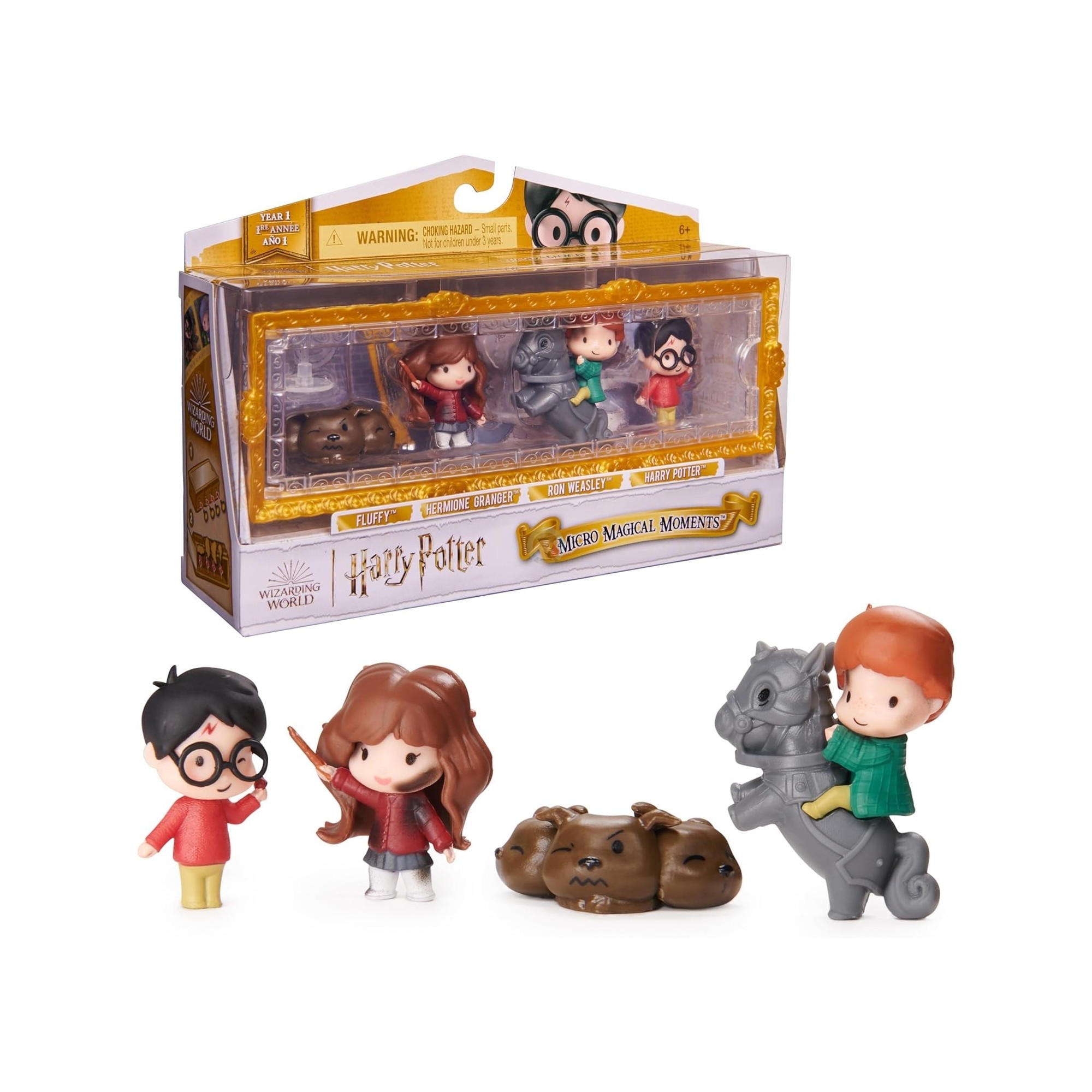 • 4 EXCLUSIVE HARRY POTTER FIGURES: Discover 1.5-inch figures of Harry Potter, Hermione Granger, Ron Weasley and Fluffy, a clear display case and 4 stands. Cute details make these Harry Potter toys a must-have.