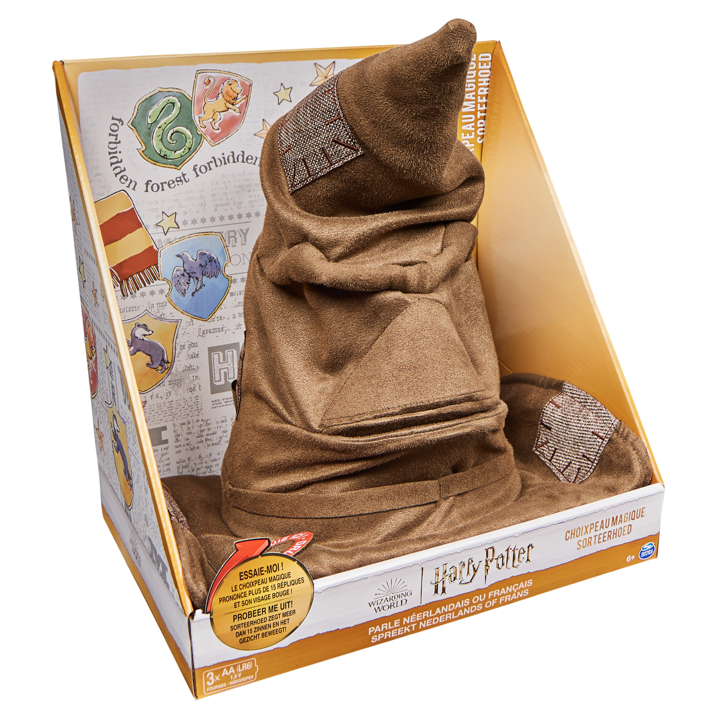 • KIDS TOY FOR AGES 6 AND UP: The Wizarding World Sorting Hat speaks Dutch and French. Includes 3 AA batteries. Measures 35,56 cm H x 38,1 cm W, including a 17,78 cm opening for head.