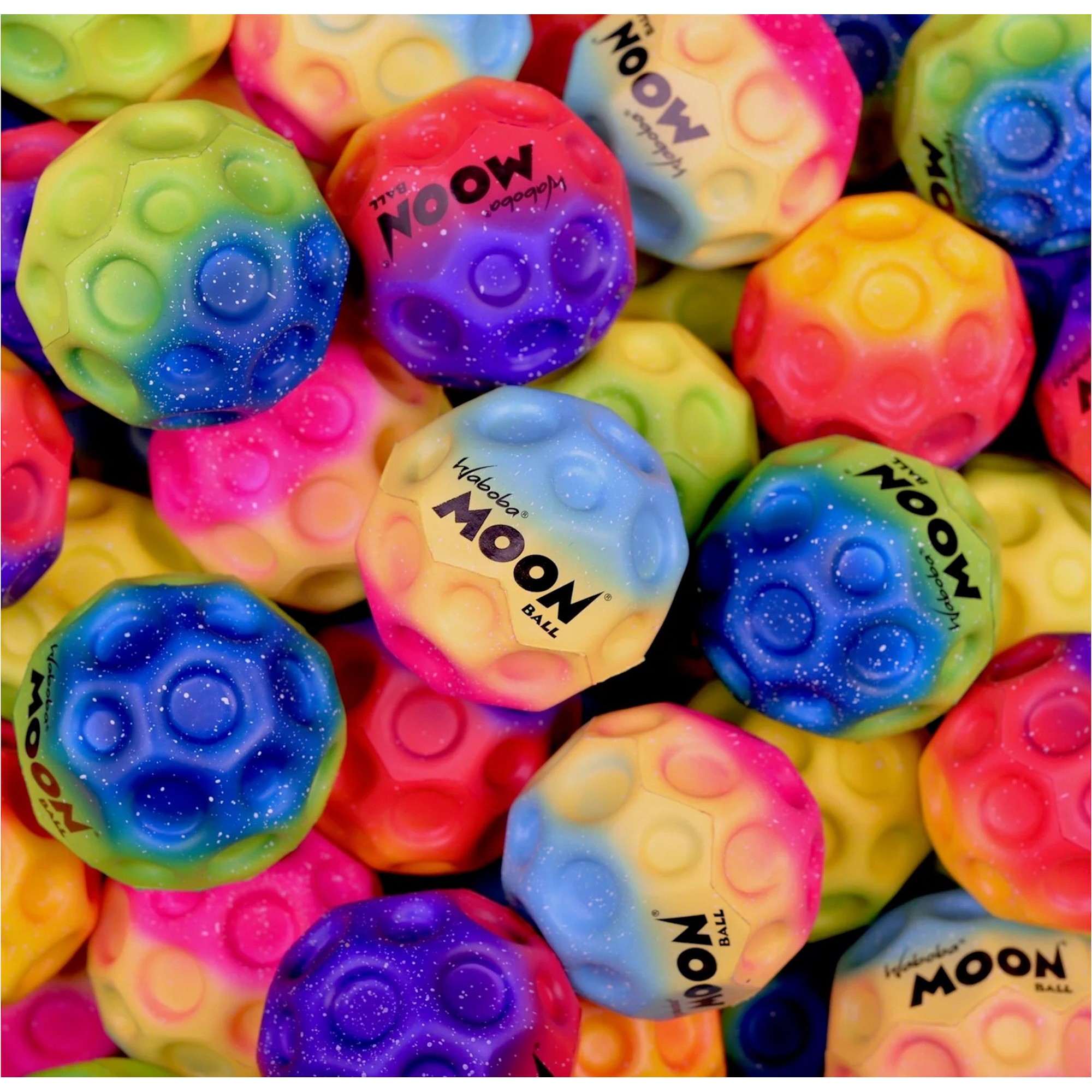 Get your hands on these rainbow Waboba Moon Balls in cosmic colors! It’s the same super high bouncing Moon Ball you love, now in out-of-this-world ombre colors. These multicolored Moon Balls also feature white splatter-like-stars all over. One bounce and it’s like discovering a new galaxy.