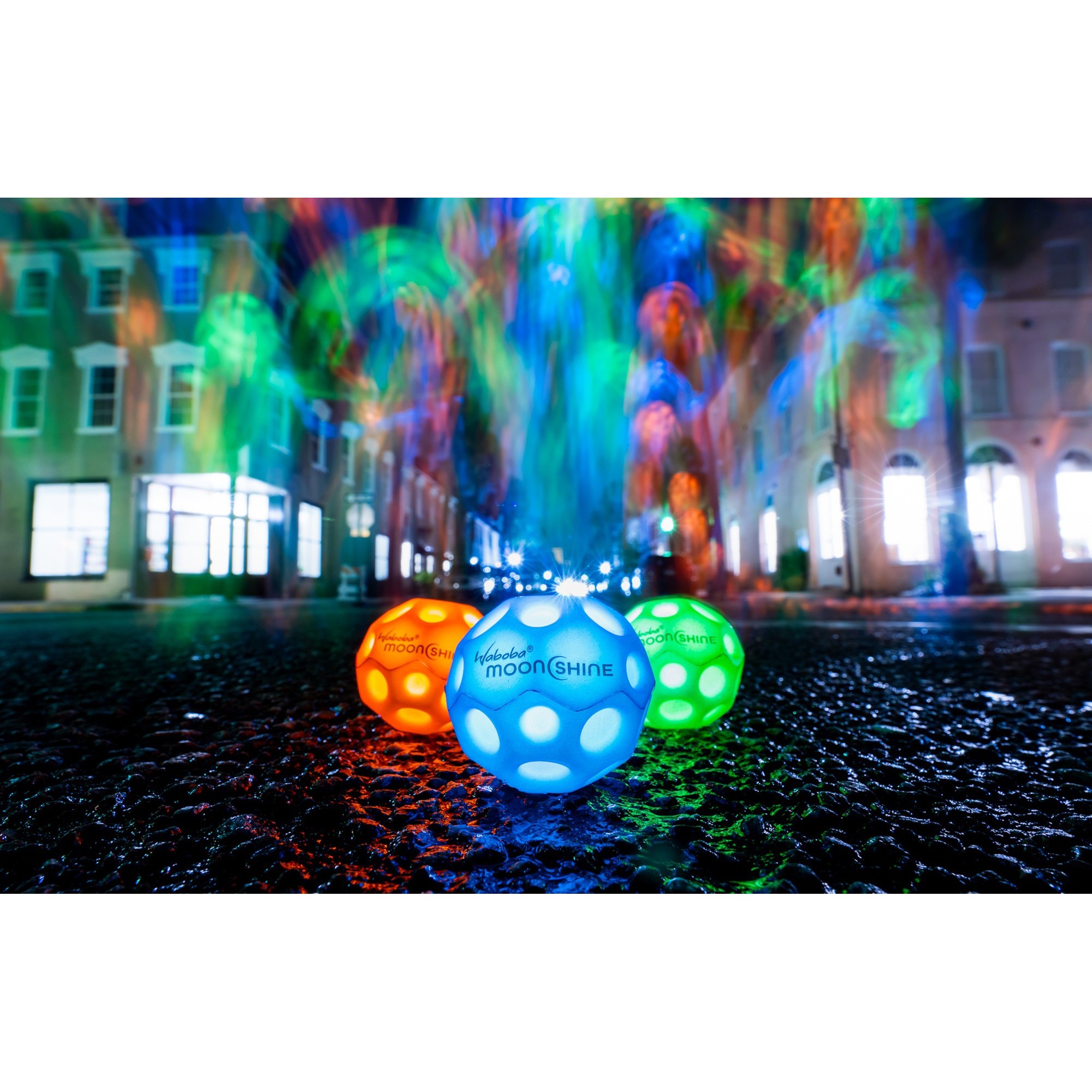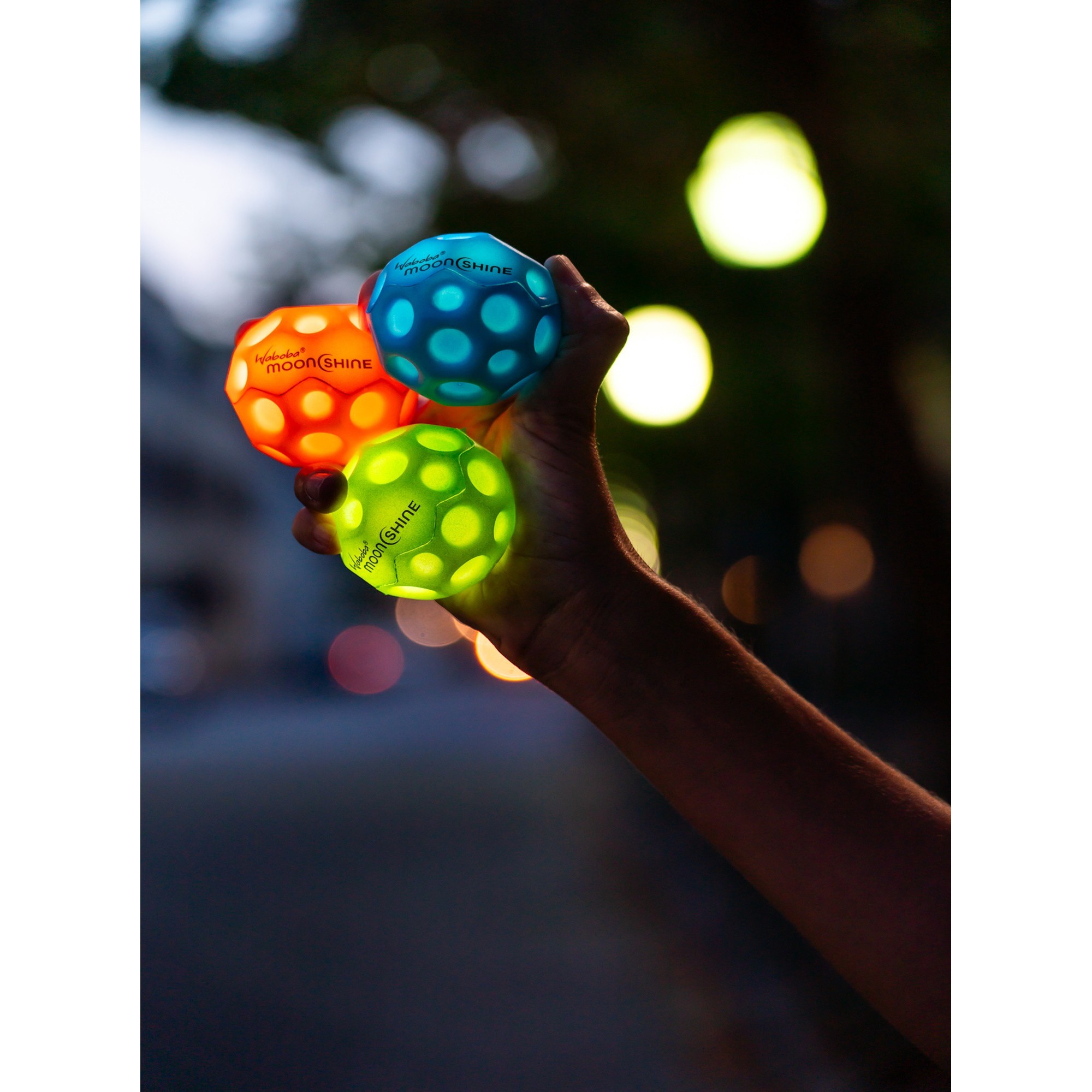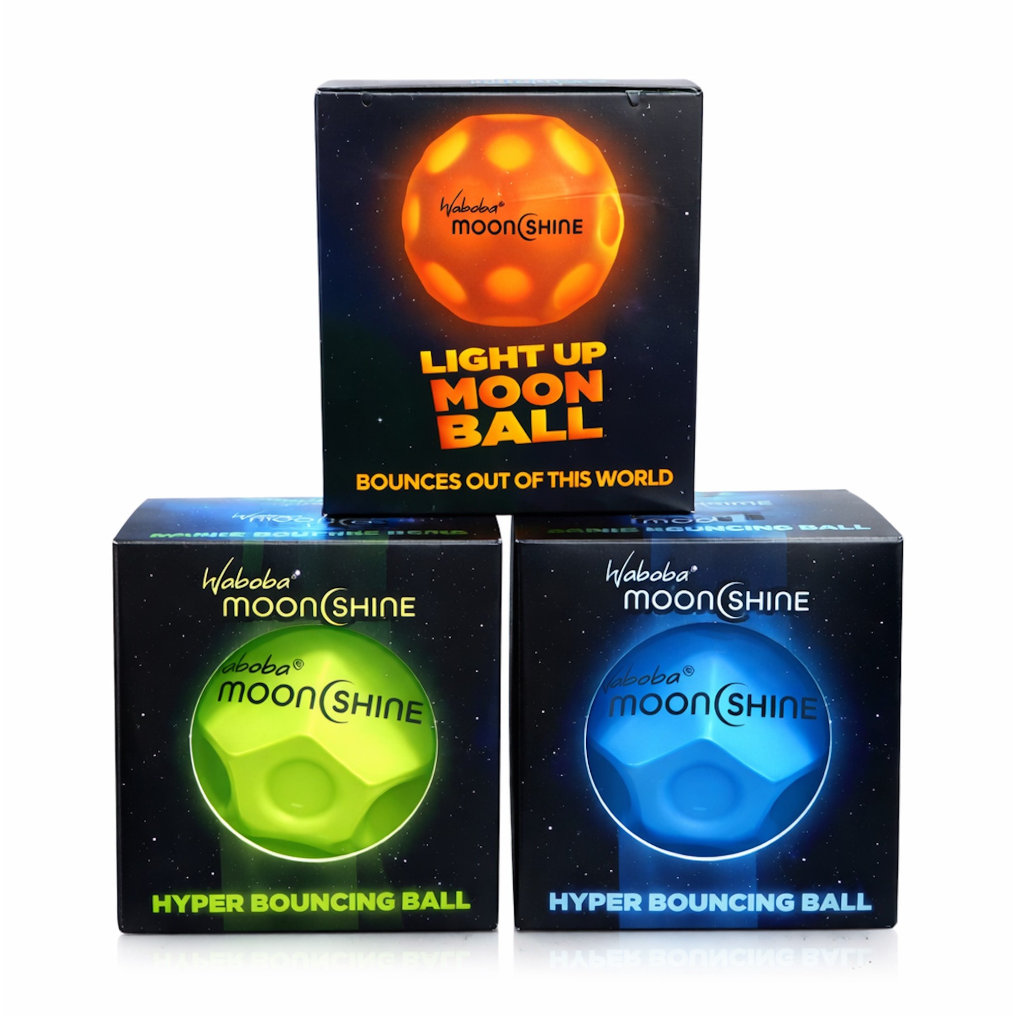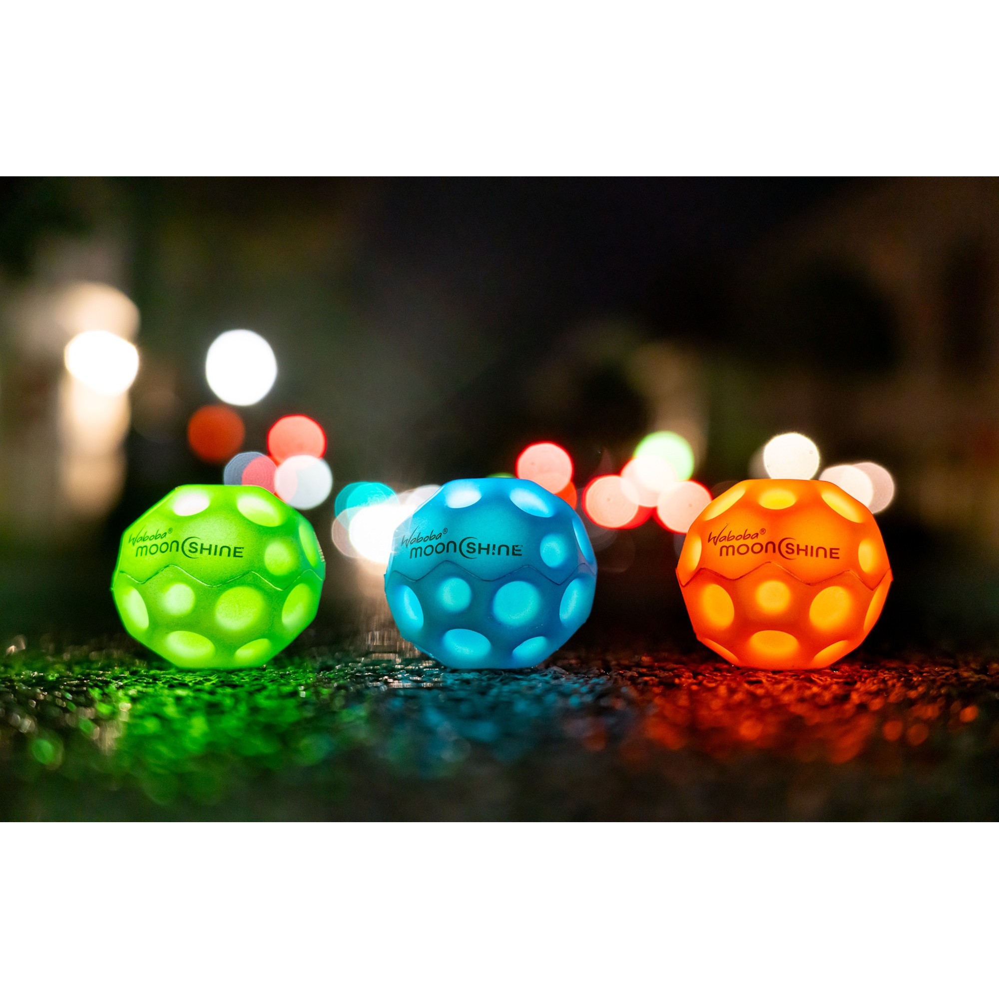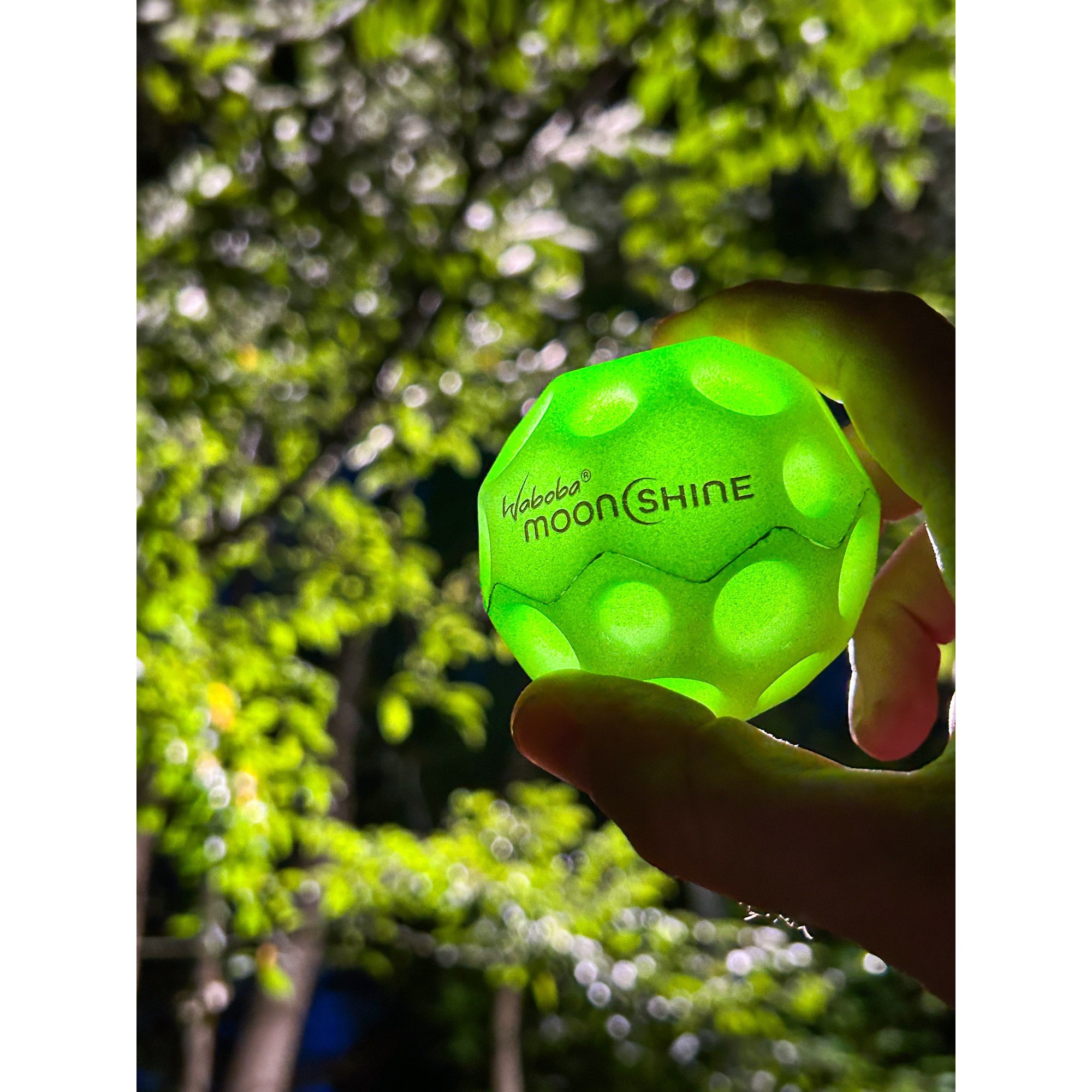 Play in the dark, because it’s a full Moon every night with Waboba Moonshine. Our new light up Moon Ball is slightly smaller, but lightyears ahead in fun. Bounce to activate the light.