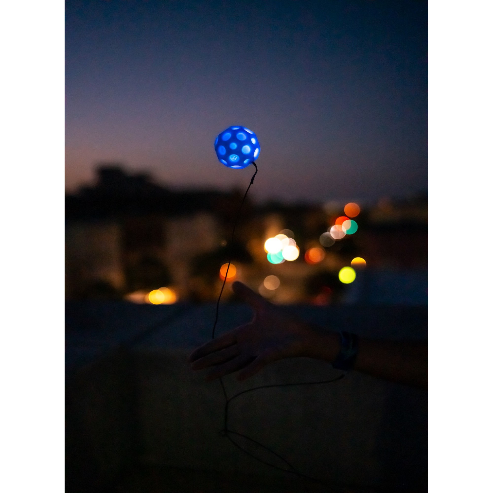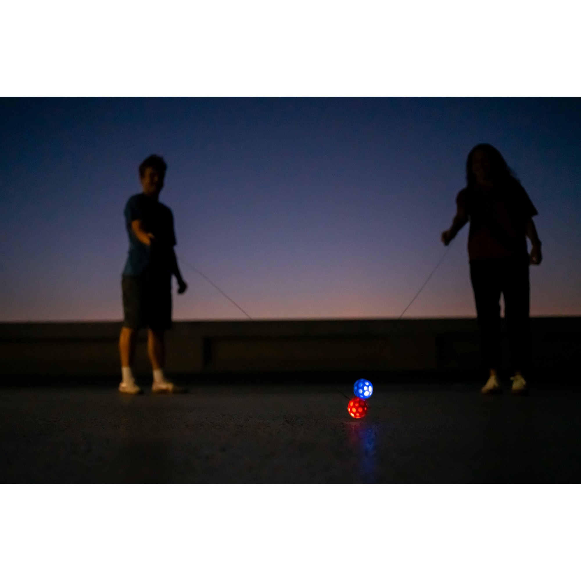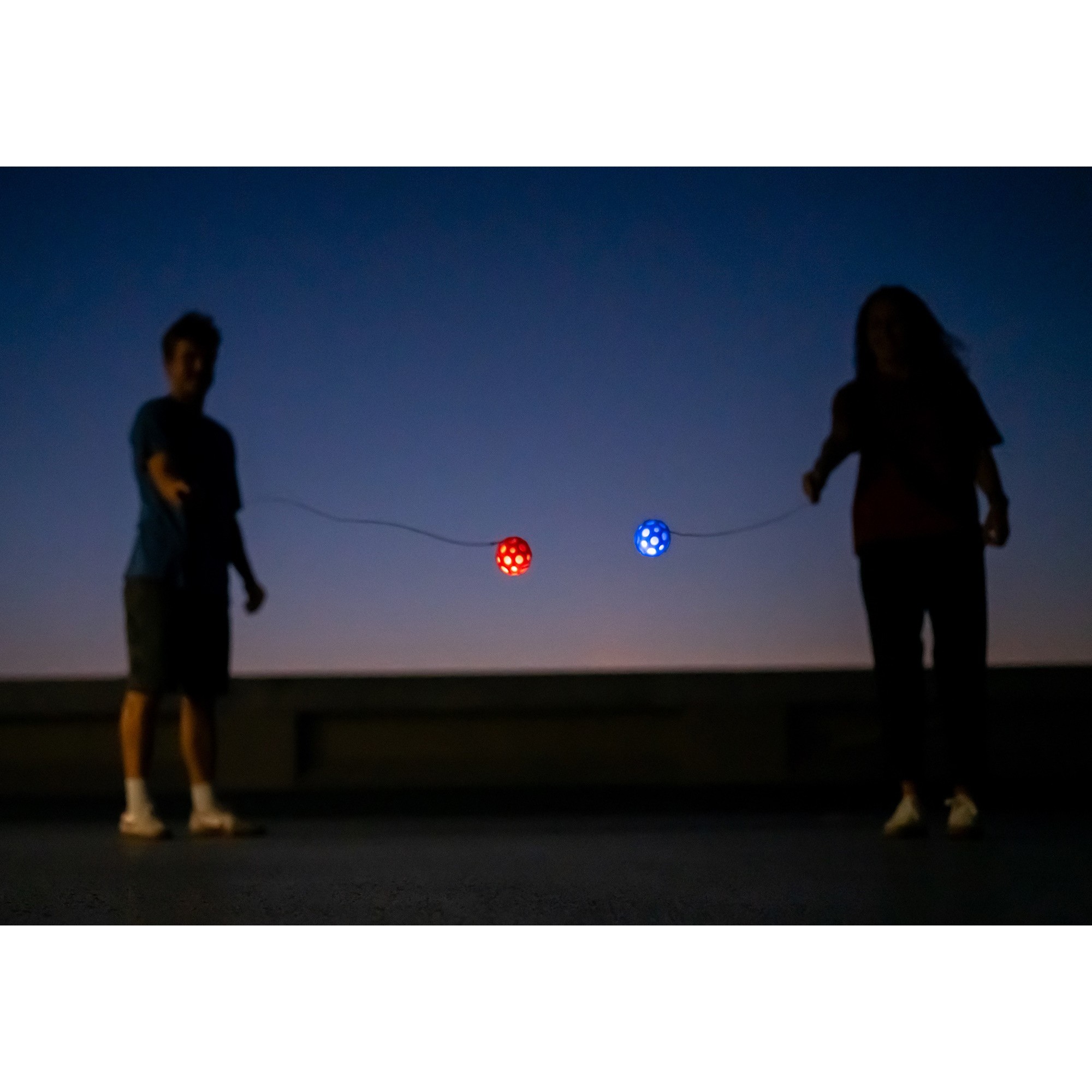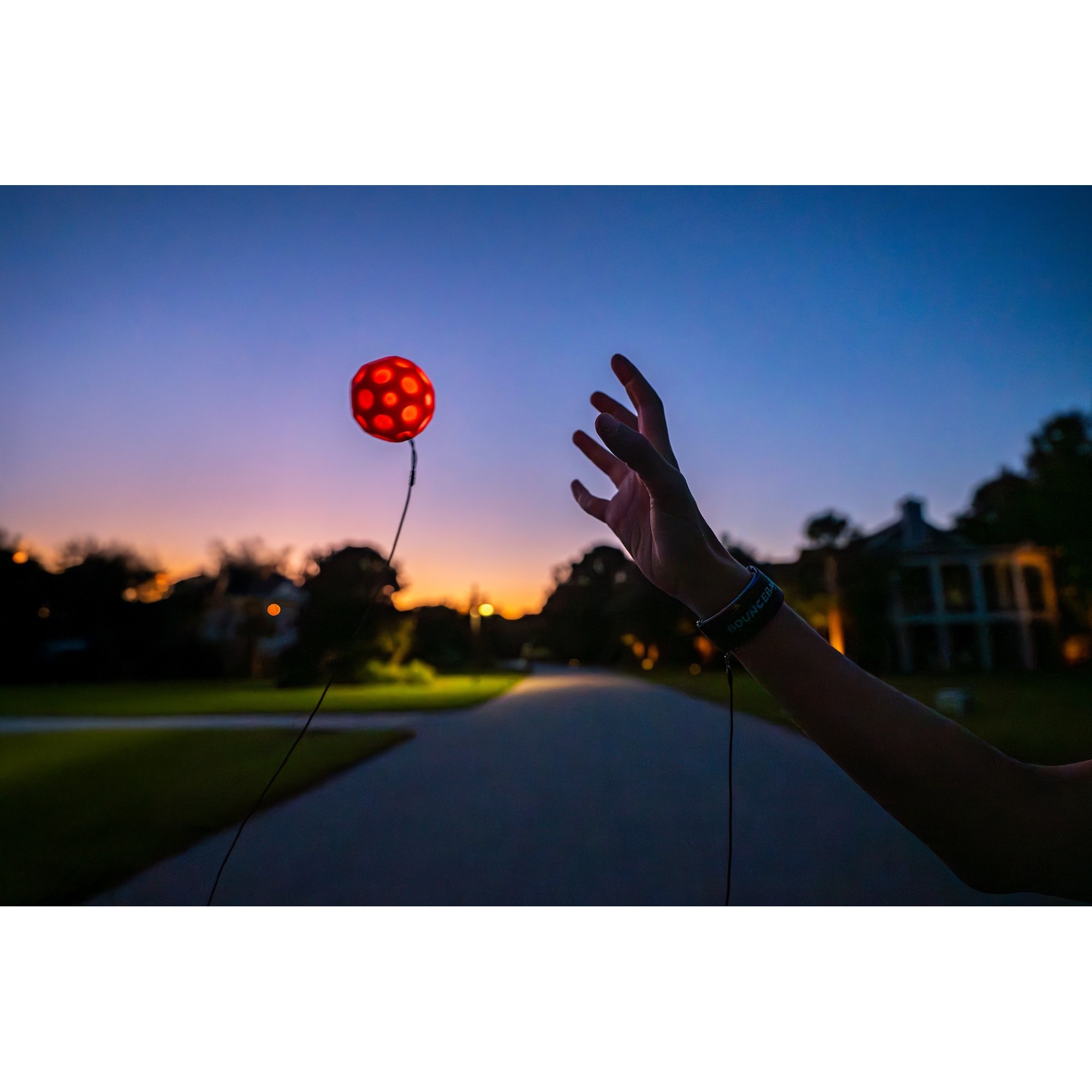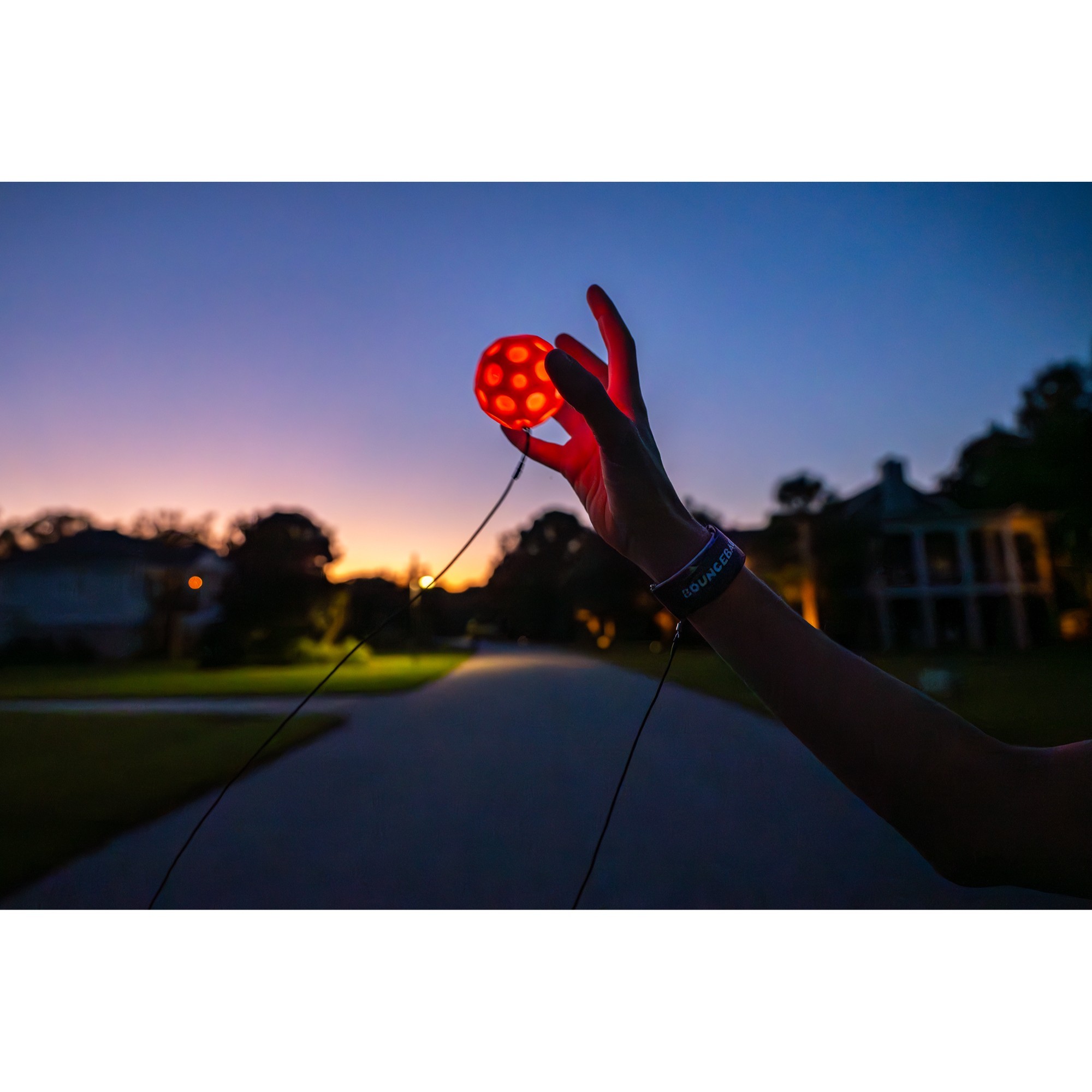Bounceback in the dark with Moonshine! Light up nighttime play with our new nocturnal edition of a Moon Ball on a string. Get the wiggles out before bedtime!"