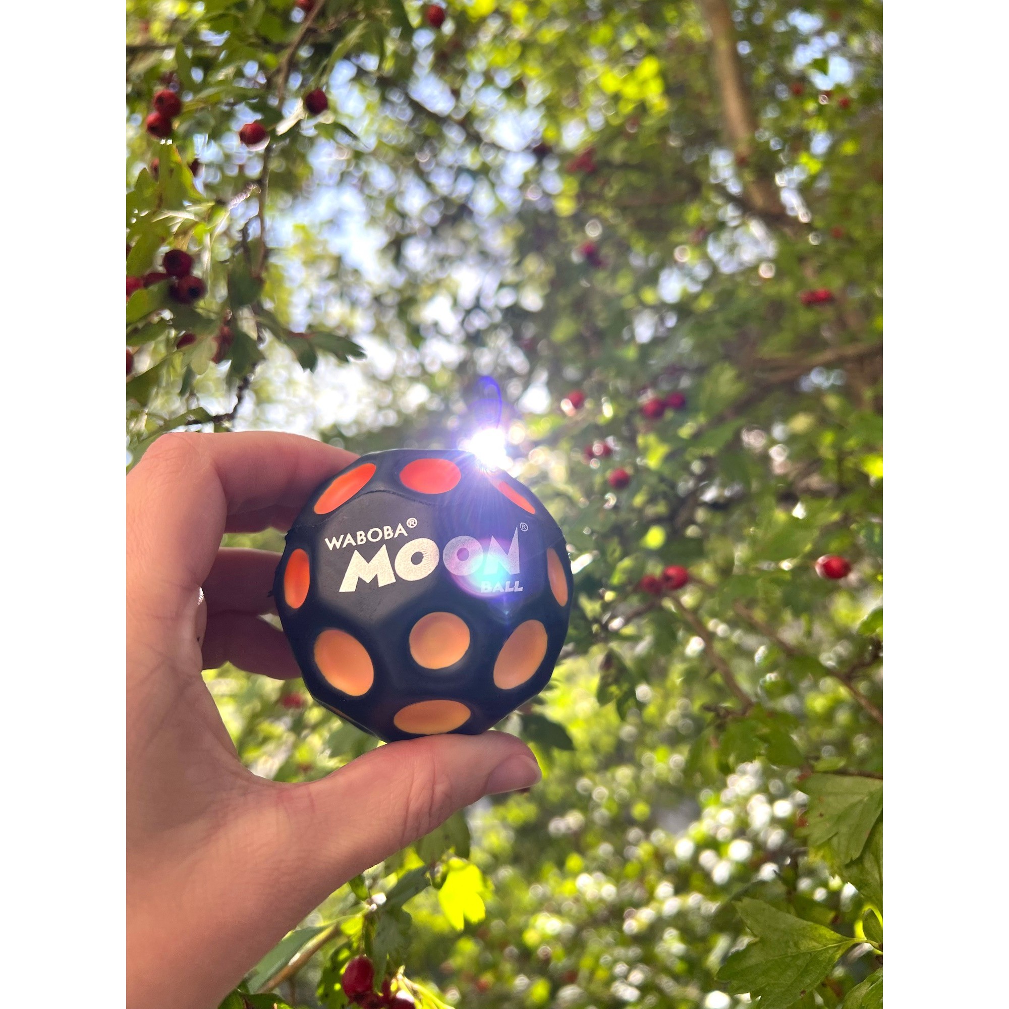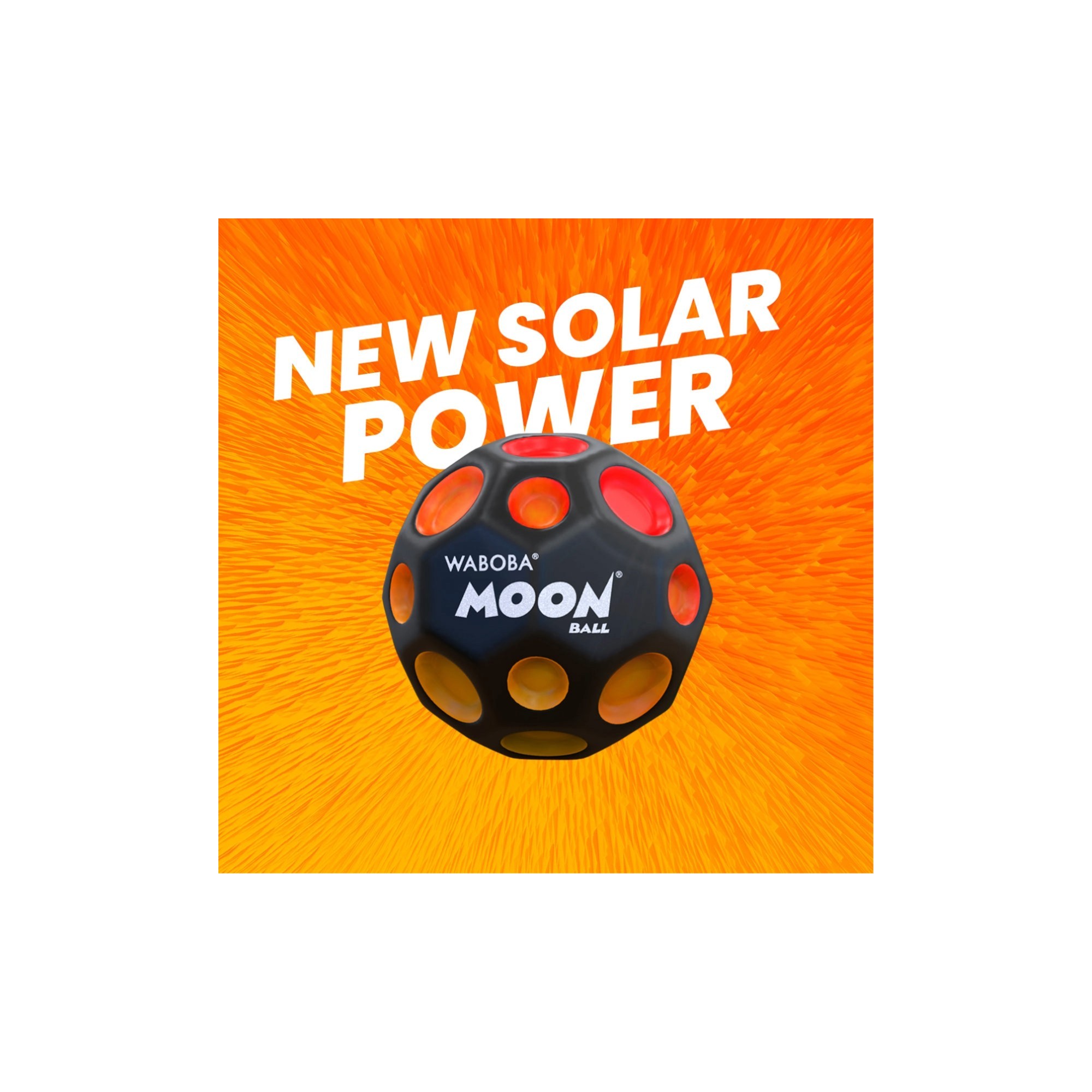Introducing the sunny side of the Moon Ball! This special edition Moon Ball changes color in the sun. Give your Moon Ball a new solar power that's out of this world! Take it outside and watch how the craters change from yellow to red. Whenever you're back indoors or put the ball away, the crater color changes back to yellow. Just another reason to enjoy a day under the sun. Bounce it all day!